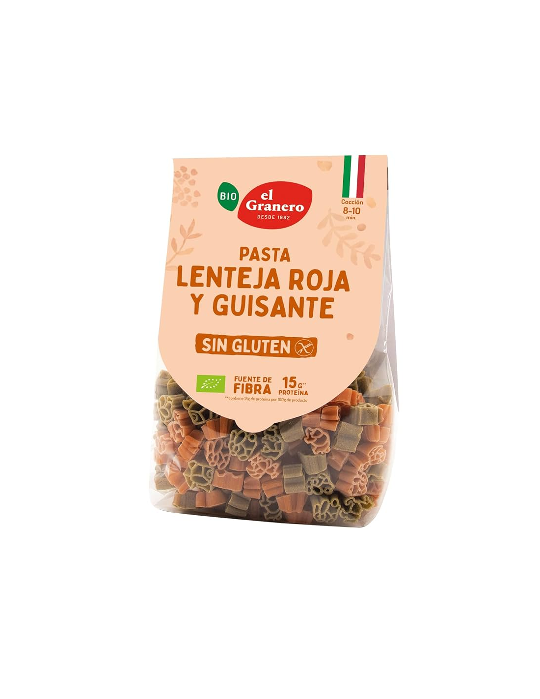 Características y Beneficios de la Pasta Lenteja Y Guisantes Animales Sin Gluten Bio, 250 G de El Granero Integral
