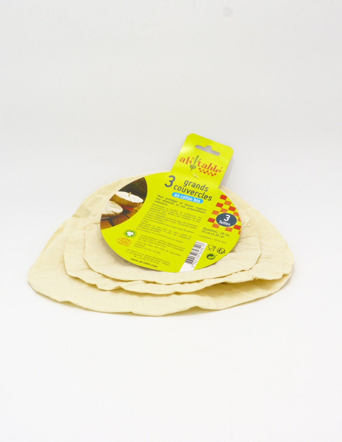 Descubre el increíble conjunto de Cubreplatos algodón orgánico ø20-25-30cm, 3ud de Ah! Table!, diseñado para mantener tus alimentos frescos y protegidos de manera instantánea. Fabricados con algodón 100% orgánico, estos cubreplatos son suaves, resistentes y respetuosos con el medio ambiente, ideales para quienes buscan calidad y sostenibilidad en su cocina.