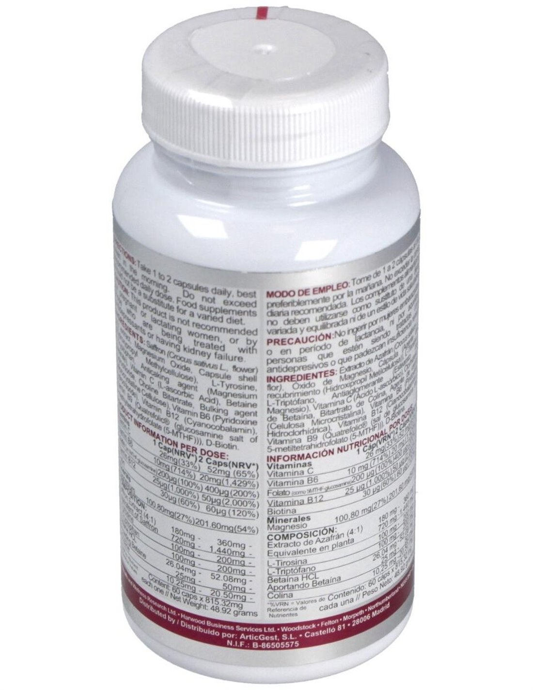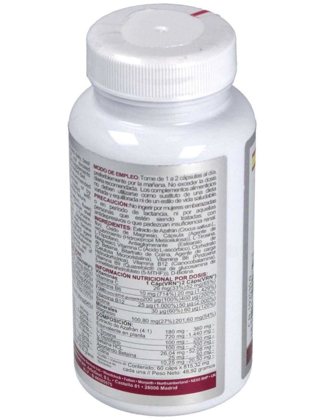 - Contiene extracto de azafrán, reconocido por su uso tradicional en la promoción del bienestar emocional y la sensación de calma.