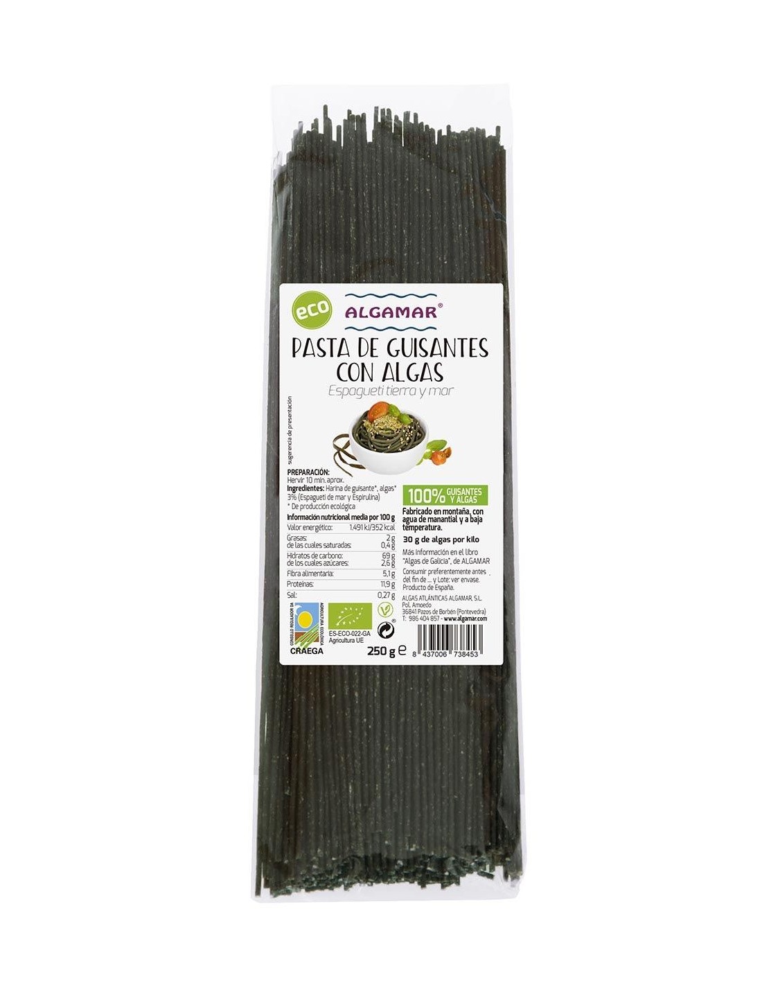 Pasta Espagueti de Guisantes con Algas de Algamar
