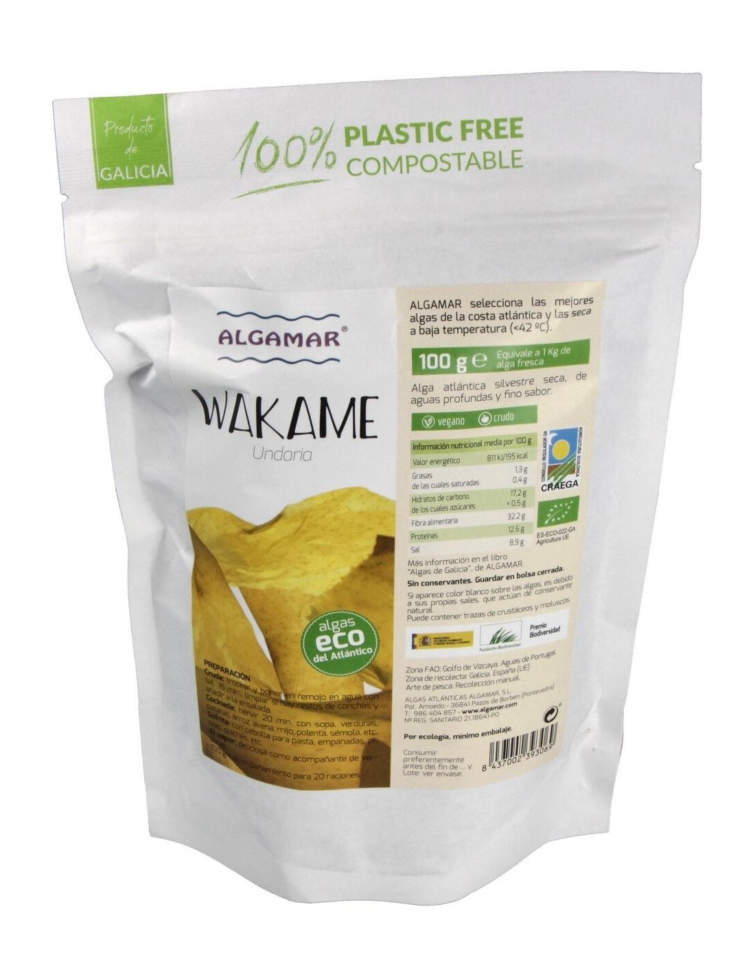 El Alga Wakame de Algamar se presenta en un formato que conserva sus propiedades originales, garantizando frescura y calidad. Su diseño y presentación facilitan su almacenamiento y uso en el hogar, adaptándose a diferentes estilos de cocina.