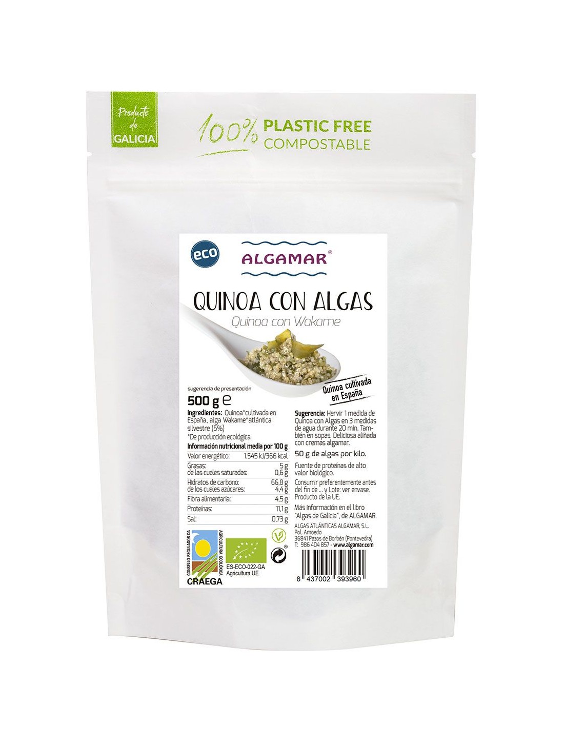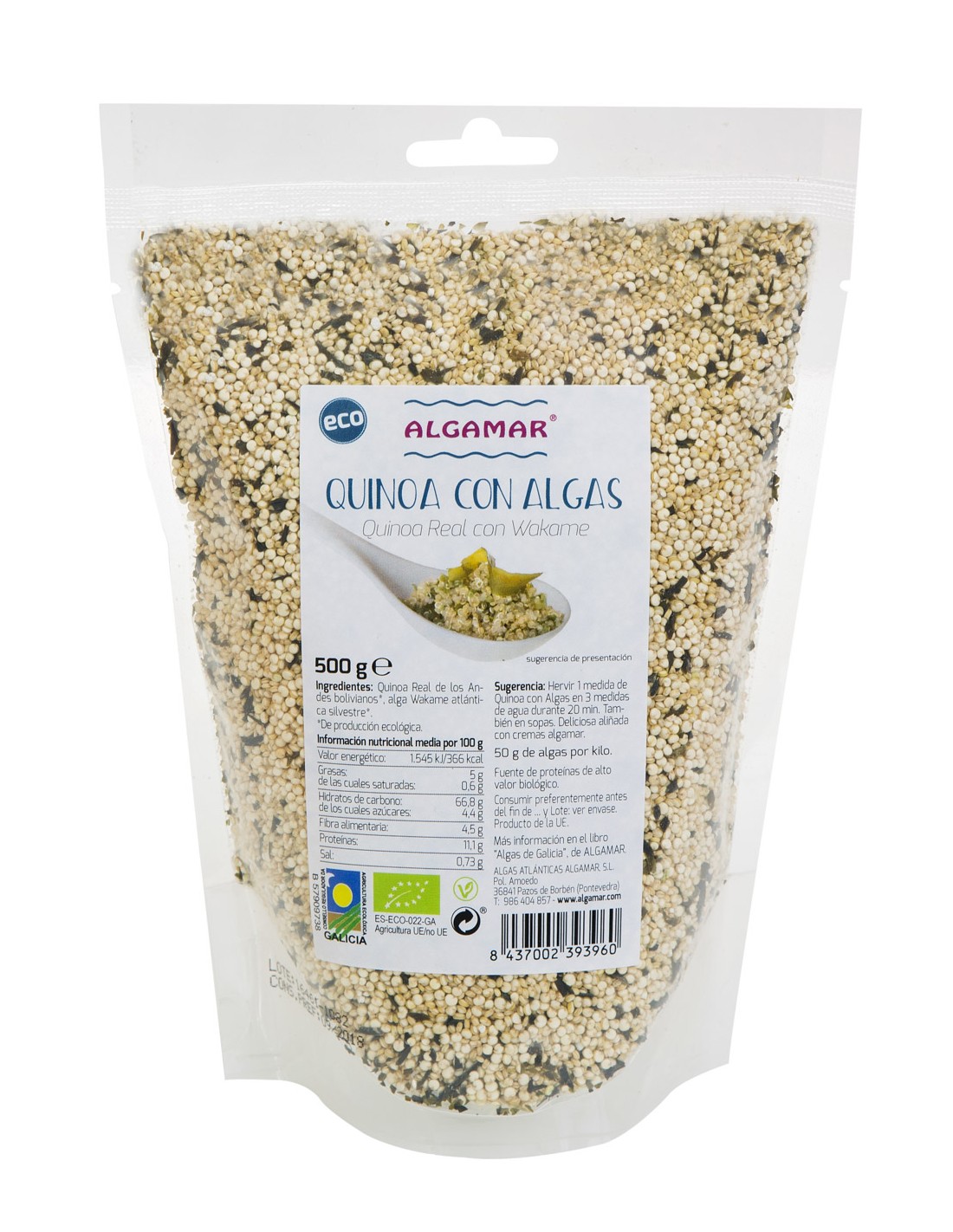 Ingredientes:Quinoa* cultivada en España, Alga wakame* atlántica silvestre (5%). (*) De producción ecológica.Valor nutricional por 100 gramos:
