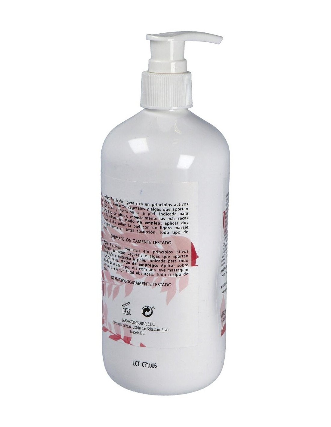 Aplicar esta emulsión hidratante sobre la piel, una vez terminado el aseo personal, con ligeros masajes circulatorios, hasta su total penetración.