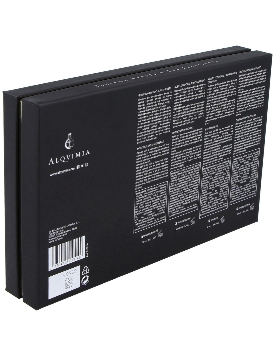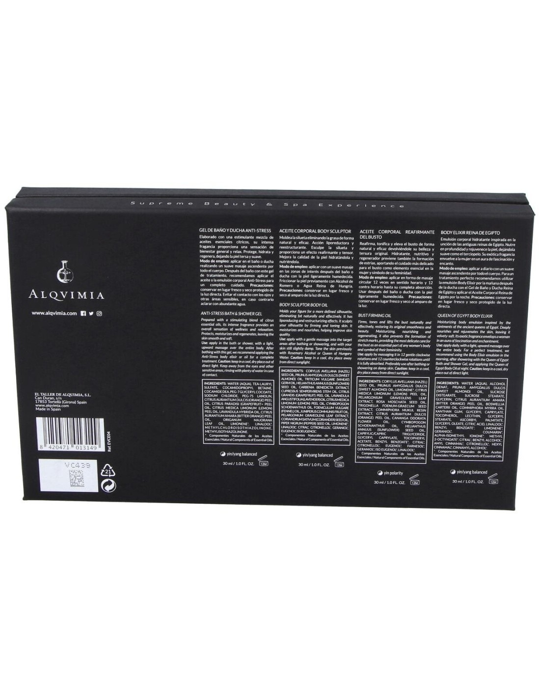 Gel de baño y ducha anti-stress: Water (aqua), tea-lauryl sulfate, cocamidopropyl betaine, cocamide dea, peg-7 glyceryl cocoate, sodium chloride, peg-75 lanolin, citrus aurantium dulcis (orange) peel oil, citrus paradisi (grapefruit) peel oil, citrus medica limonum (lemon) peel oil, lavandula hybrida oil, citrus aurantium amara (bitter orange) peel oil, origanum majorana leaf oil, limonene*, linalool*, methylchloroisothiazolinone, methylisothiazolinone.