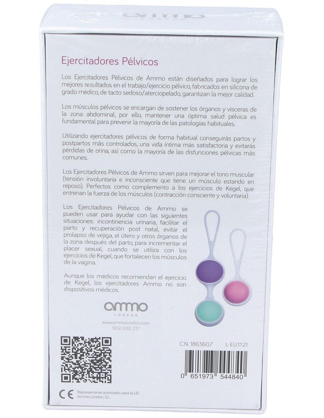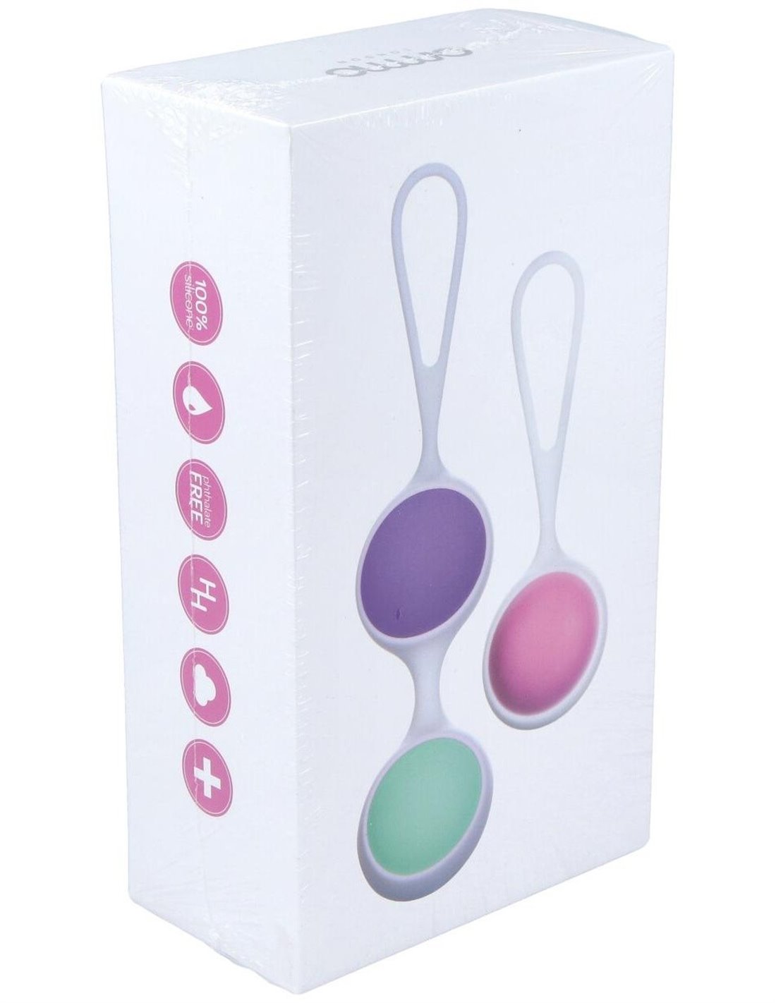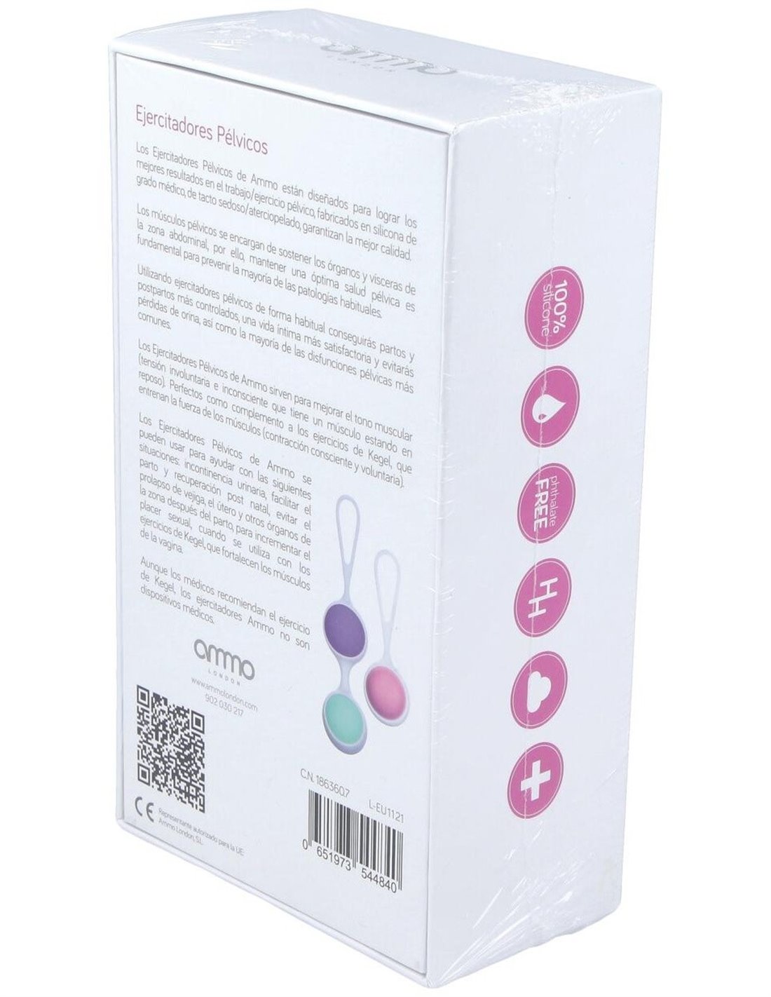Diseñados para lograr los mejores resultados en el trabajo/ejercicio pélvico, fabricados en silicona médico, de tacto sedoso/aterciopelado, garantizan la mejor calidad. Se componen de 3 esferas de 33mm, cada una con un peso diferente de 20gr, 30gr y 40gr. (así se podrán conseguir hasta 6 combinaciones con pesos diferentes) y dos fajas de sujeción, una simple y una doble. Sirven para mejorar el tono muscular (tensión involuntaria e inconsciente que tiene un músculo estando en reposo). Perfectos como complemento a los ejercicios de Kegel, que entrenan la fuerza de los músculos (contracción consciente y voluntaria).