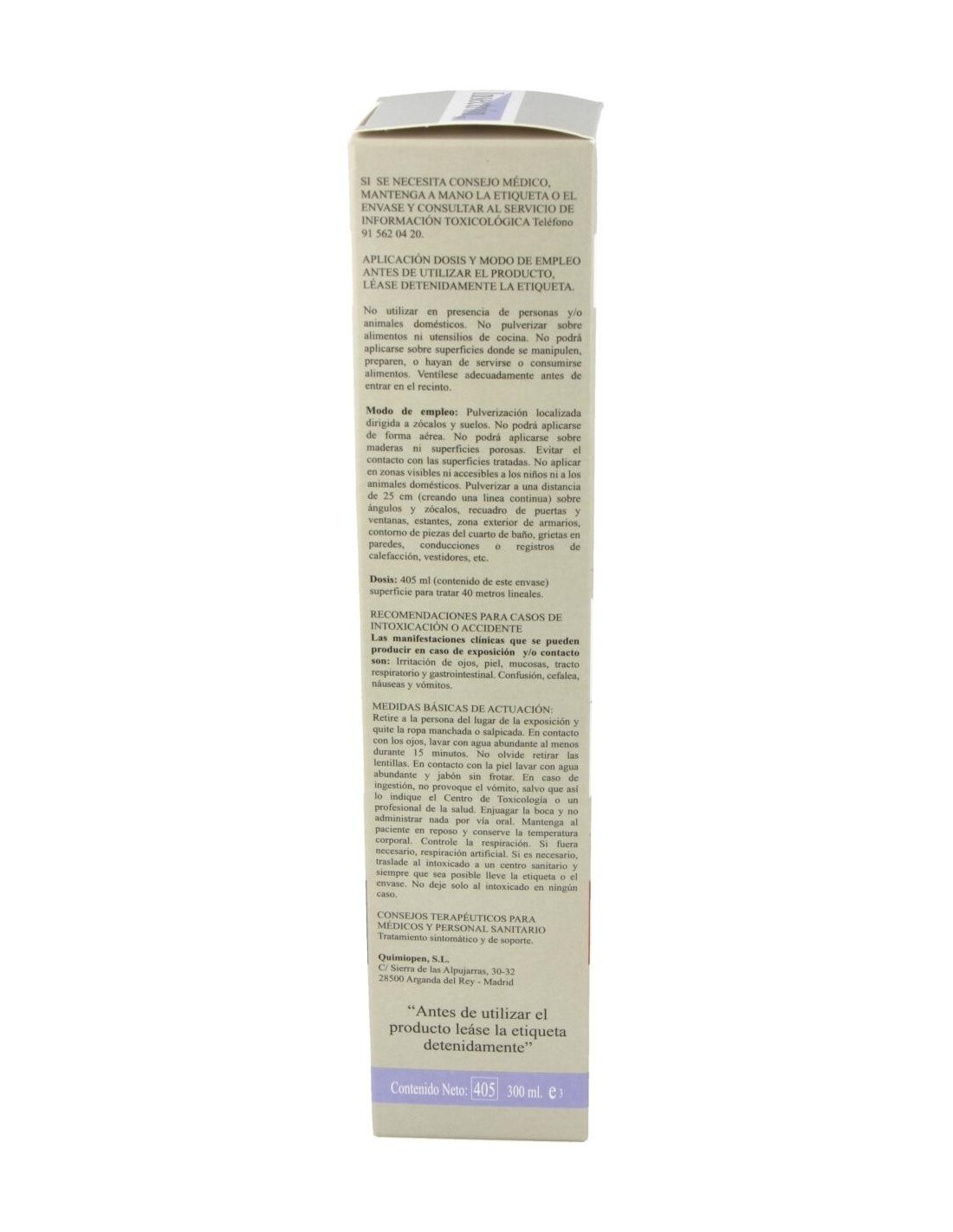 Laca insecticida de uso doméstico contra insectos rastreros. Su acción es instantánea y perdurable durante un año.