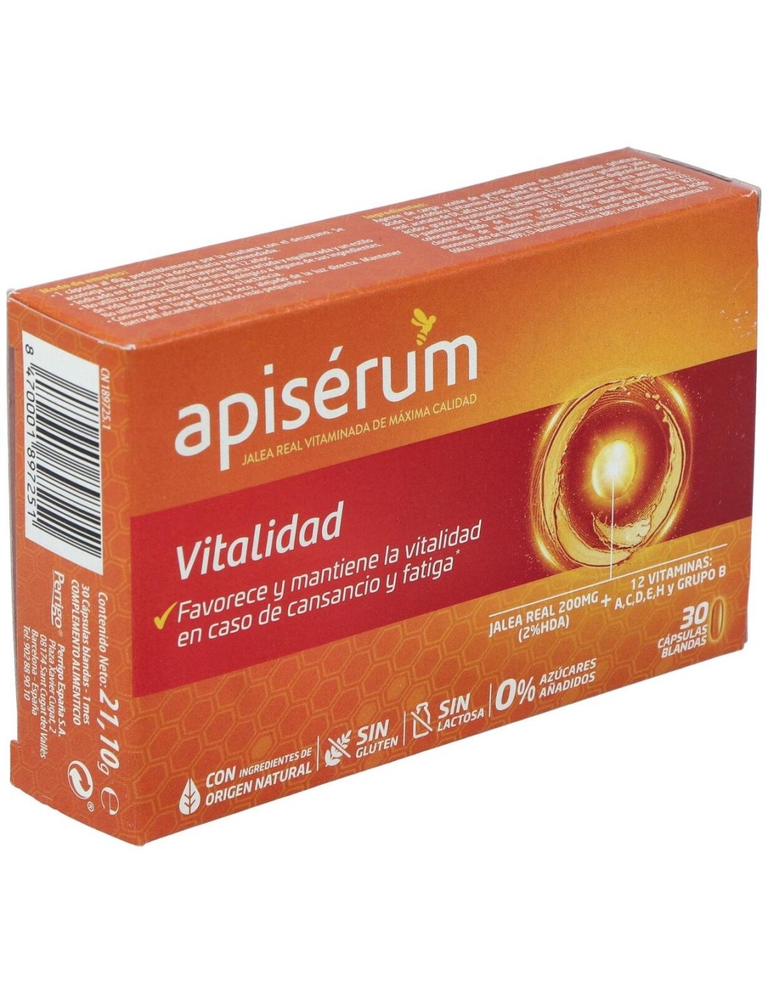 Favorece y mantiene la vitalidad en caso de cansancio y fatiga. APISERUM vitalidad 30cap.