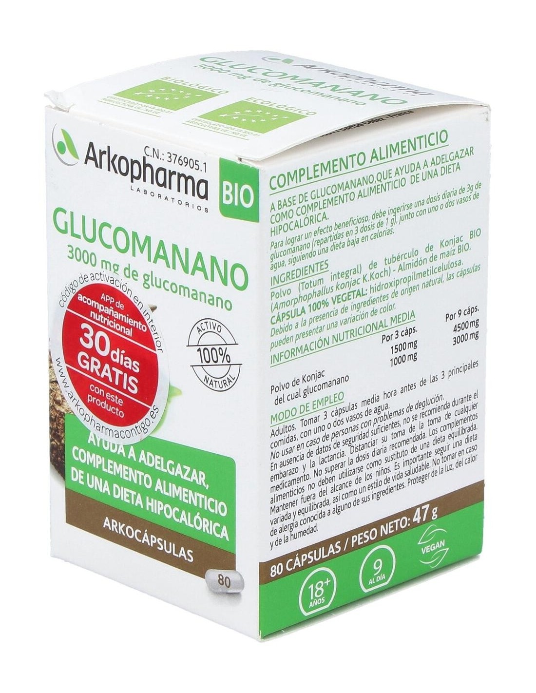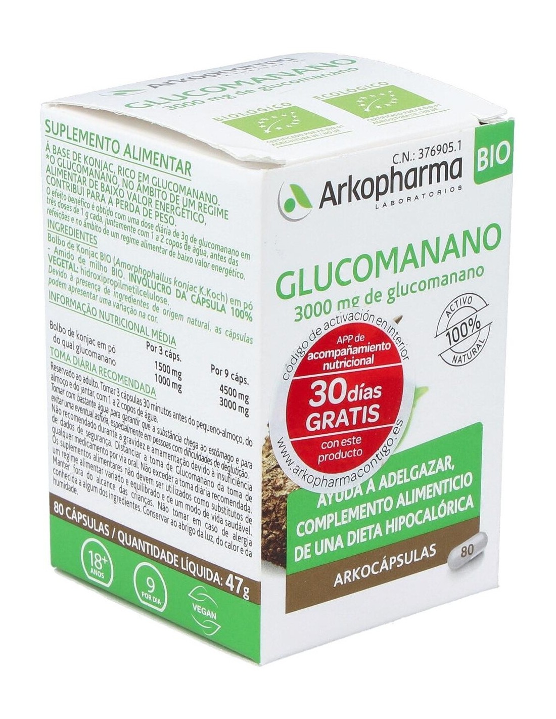 Glucomanano 80 Arkocapsulas. Bio Arkopharma