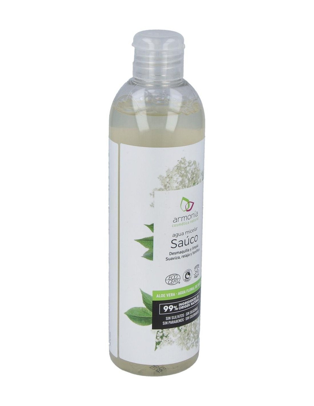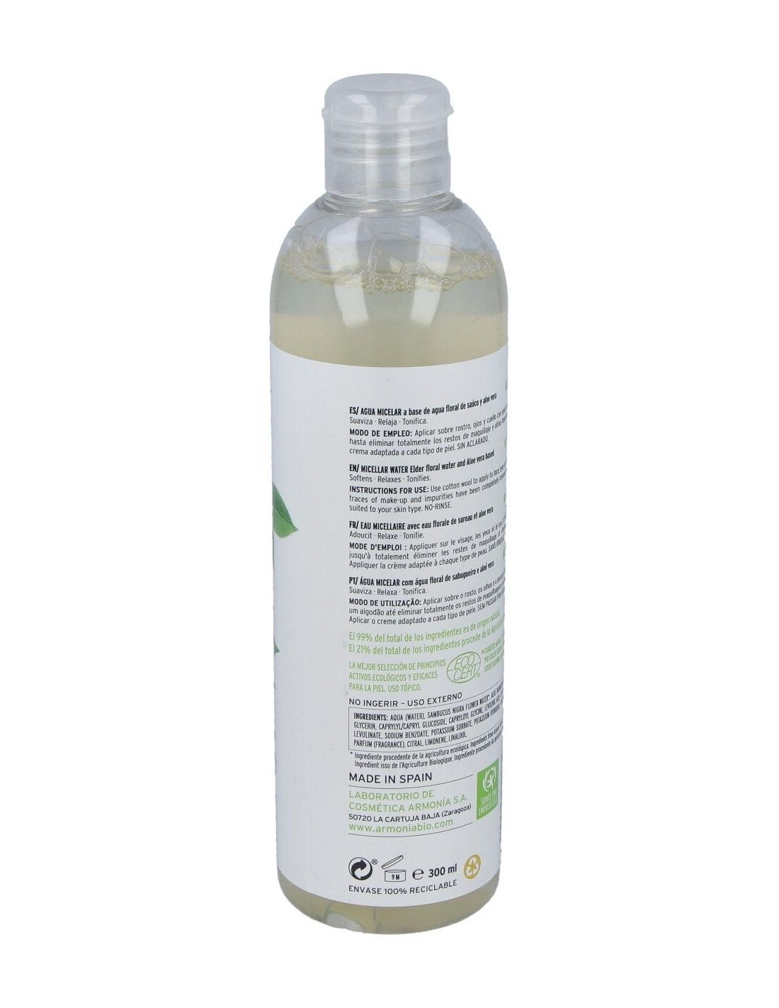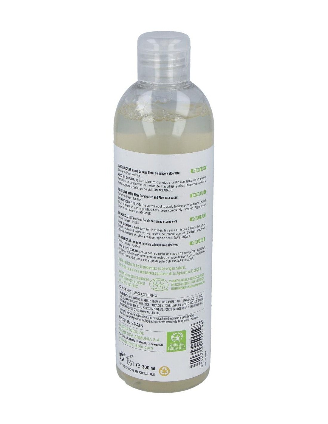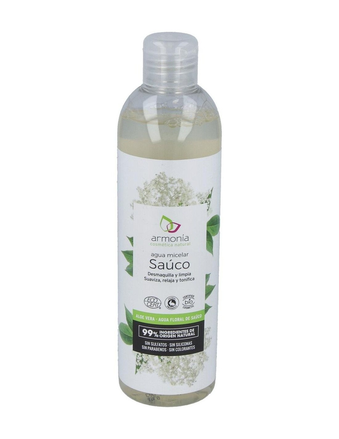 El Agua Micelar Bio de Armonia es un producto de limpieza facial para pieles sensibles que elimina impurezas y maquillaje con ingredientes naturales y fórmula biodegradable.