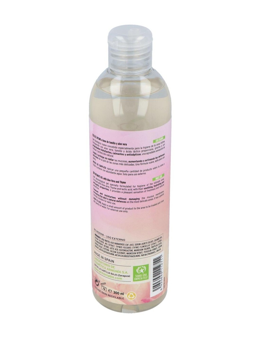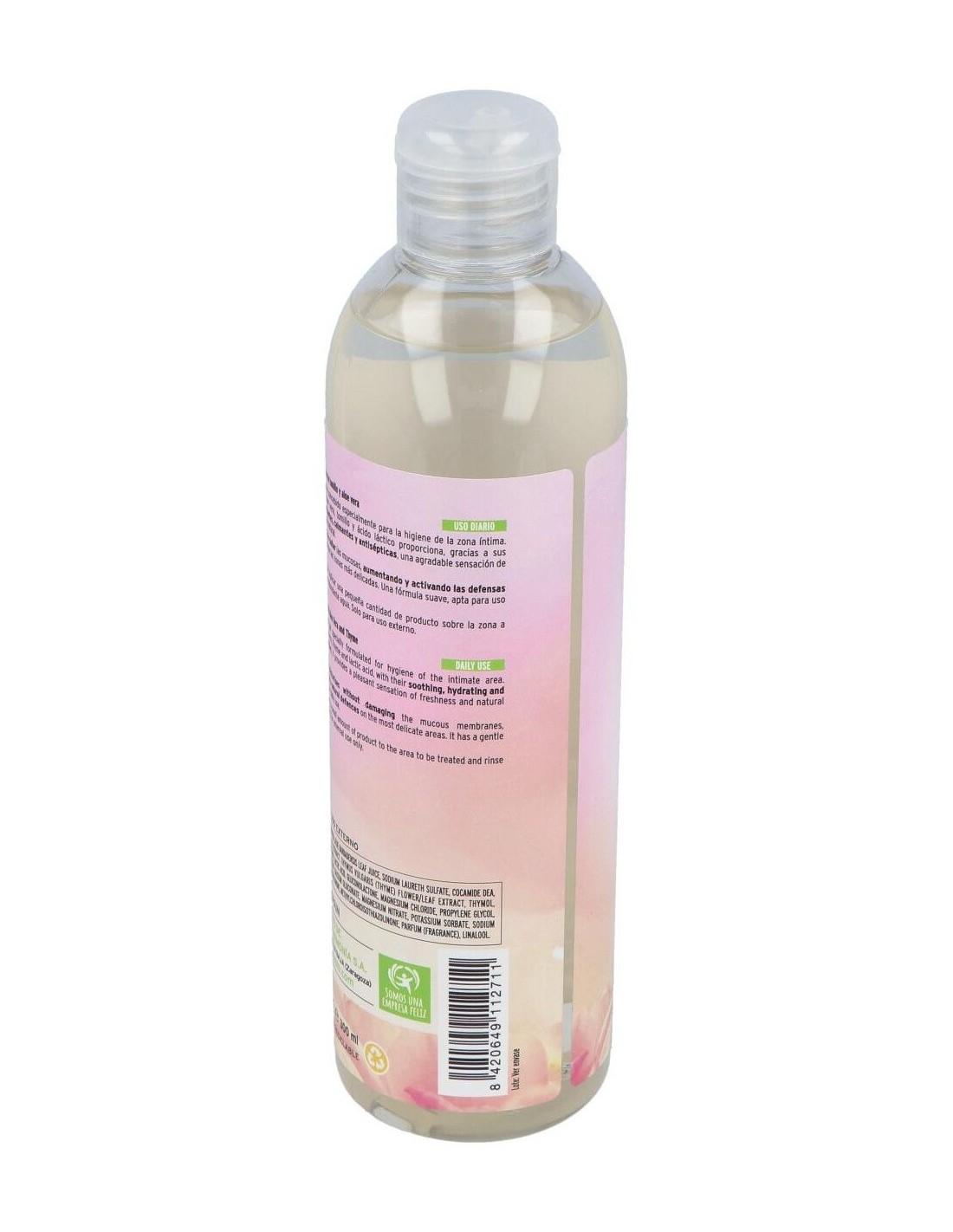 Gel suave sin conservantes parabenos, concebido especialmente para la higiene de la zona íntima. Enriquecido con Aloe vera y Tomillo, proporciona, por