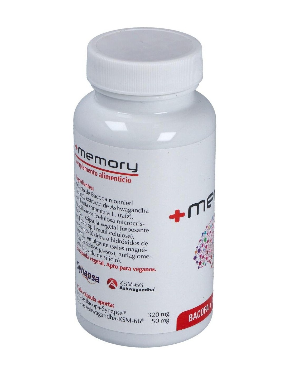 +Memory de Plantis es una asociación de Bacopa-Synapsa® con Ashwagandha KSM-66® que ayuda a mejorar la memoria, el rendimiento mental y también a acelerar el aprendizaje.Diversos estudios* con Synapsa® han evaluado los siguientes puntos encontrando una mejora significativa después de su consumo: