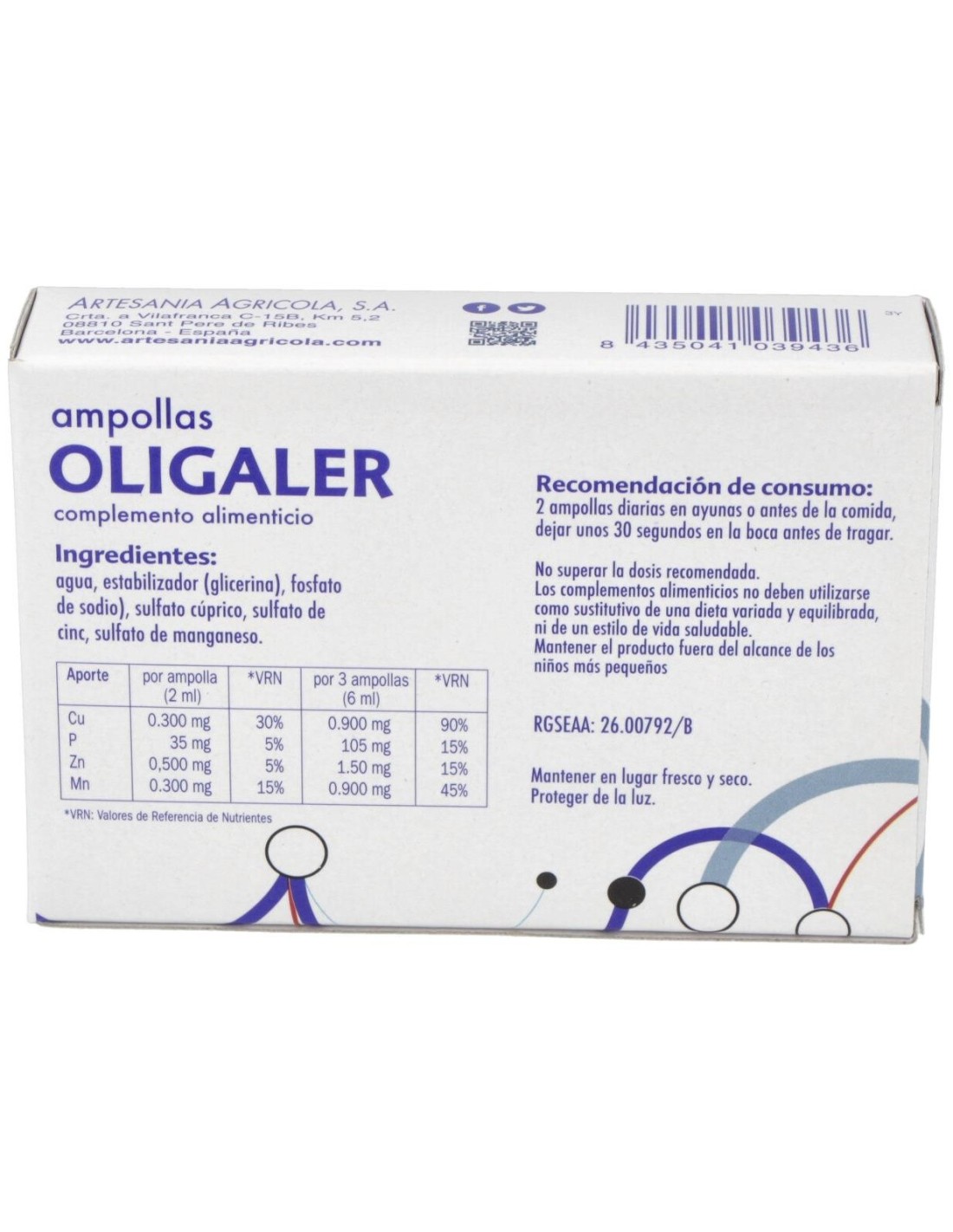 Oligaler 20 Ampollas X 2 Ml de Artesania ofrece una presentación funcional que se adapta a quienes buscan incorporar un complemento natural en su día a día, con un formato pensado para la comodidad y el uso responsable.