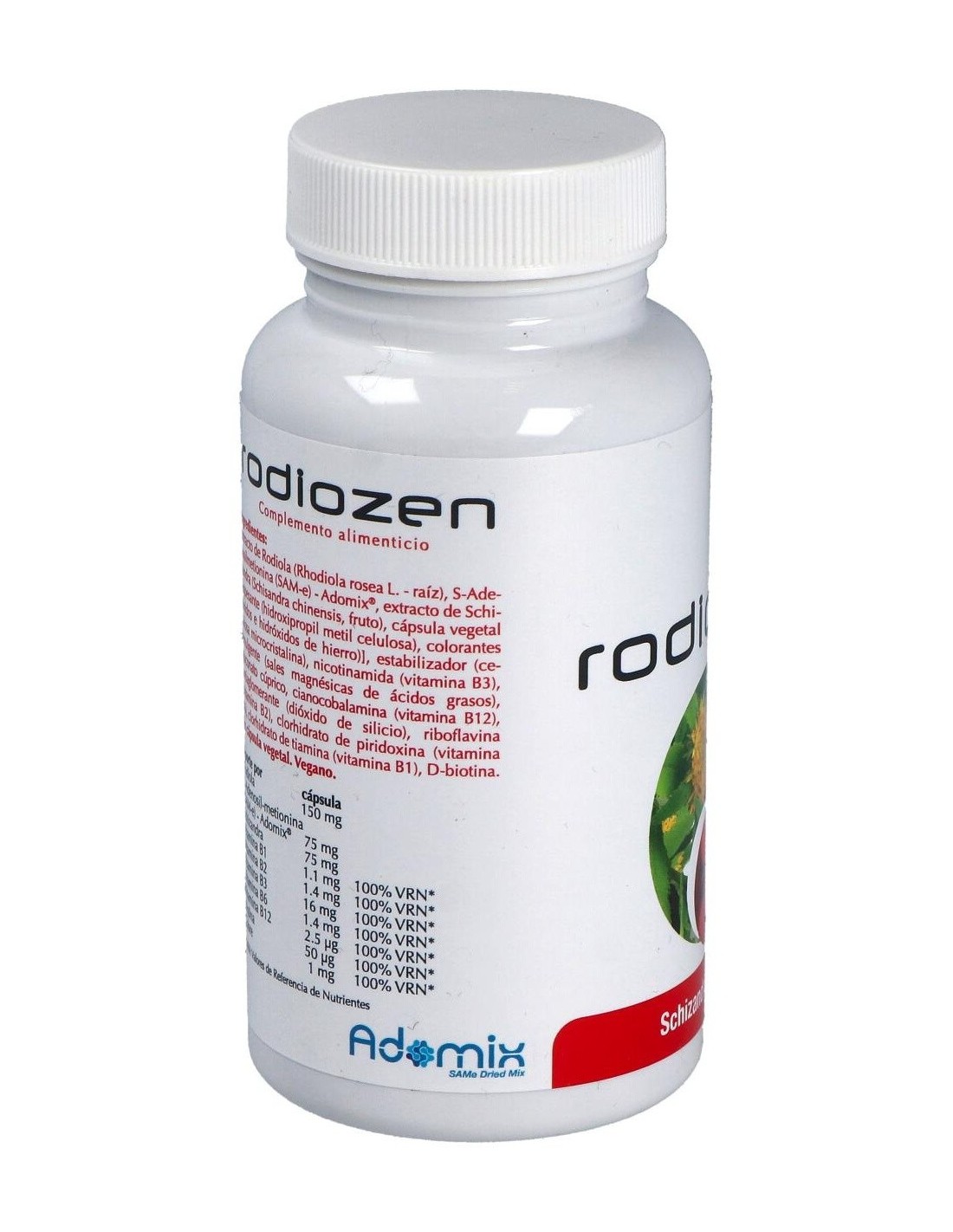 Ingredientes:Extracto de Rodiola (Rhodiola rosea L. - raíz), S-Adenosil-metionina (SAM- e) - Adomix®, extracto de Shizandra (Shisandra chinensis, fruto), cápsula vegetal [espesante (hidroxipropil metil celulosa), colorantes (óxidos e hidróxidos de hierro)], estabilizador (celulosa microcristalina), nicotinamida (vitamina B3), emulgente (sales magnésicas de ácidos grasos), gluconato cúprico, cianocobalamina (vitamina B12), antiaglomerante (dióxido de silicio), riboflavina (vitamina B2), clorhidrato de piridoxina (vitamina B6), clorhidrato de tiamina (vitamina B1), D-biotina.cModo de empleo:Tomar 1 cápsula al día junto con agua, preferiblemente entre comidas.Presentación:Envase de 60 cápsulas.