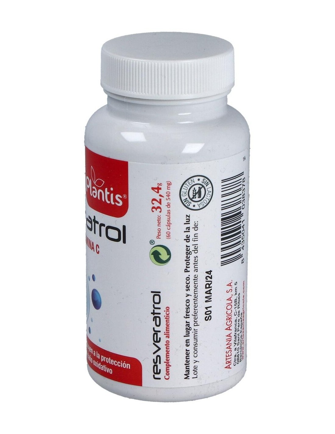 El Resveratrol Plantis 60 Cap de Artesania es un suplemento antioxidante dirigido a adultos que buscan apoyar su bienestar celular, formulado con resveratrol de origen natural para contribuir a la protección frente al estrés oxidativo.