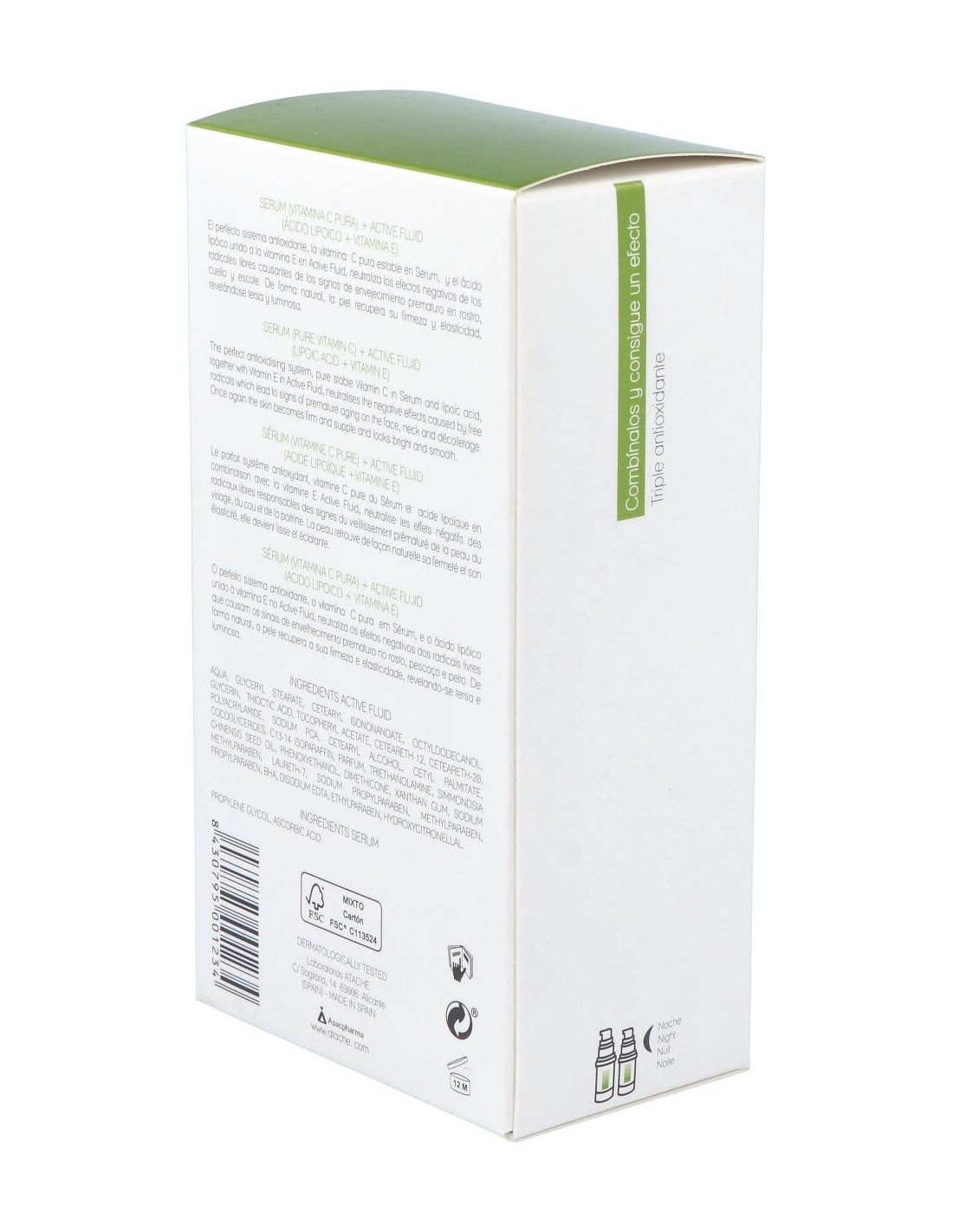 1 Active Fluid, 30ml. Crema fluida elaborada a base de ácido lipoico y enriquecida con vitamina E, que refuerzan la acción de la vitamina C y ayudan a prevenir el fotoenvejecimiento cutáneo.