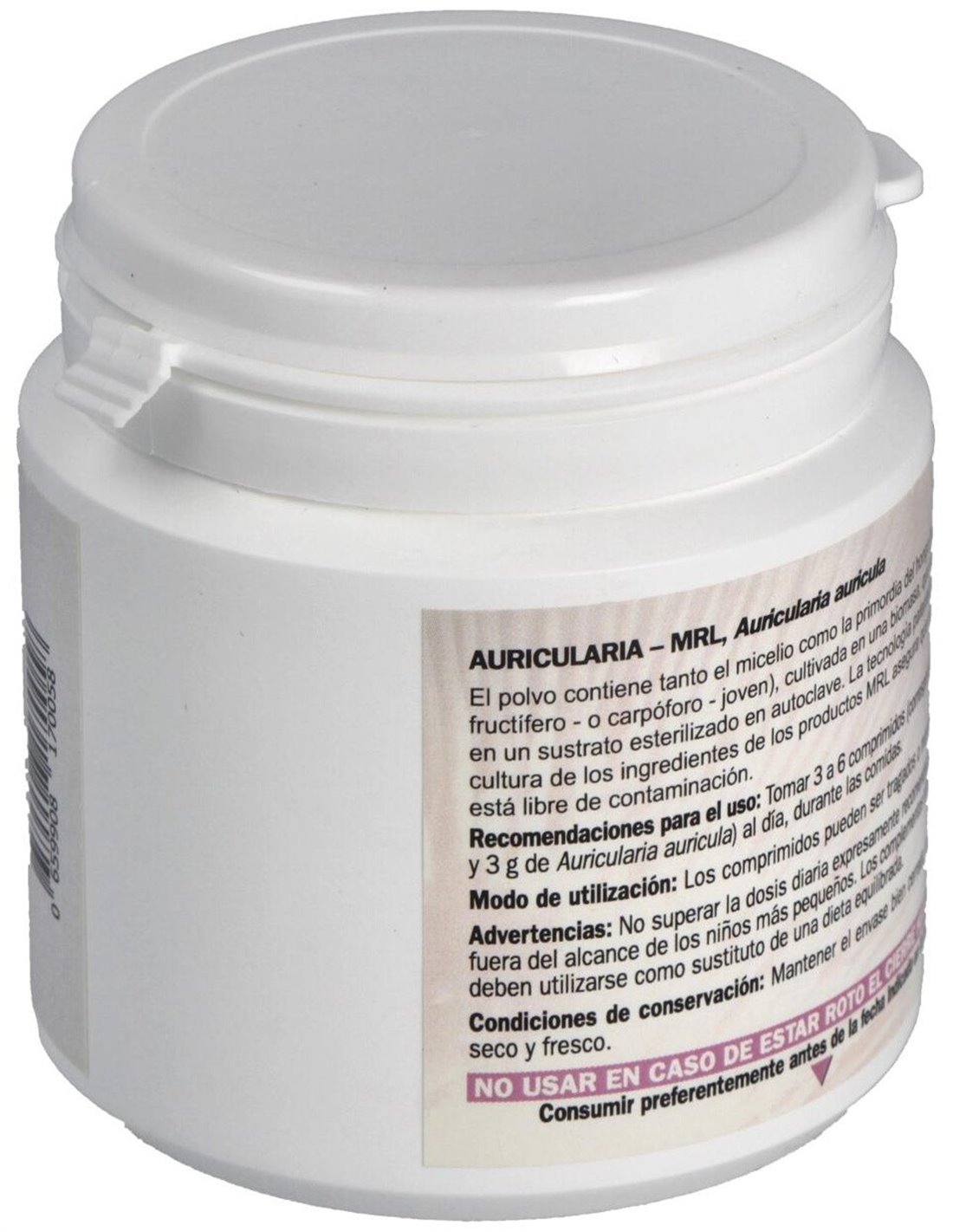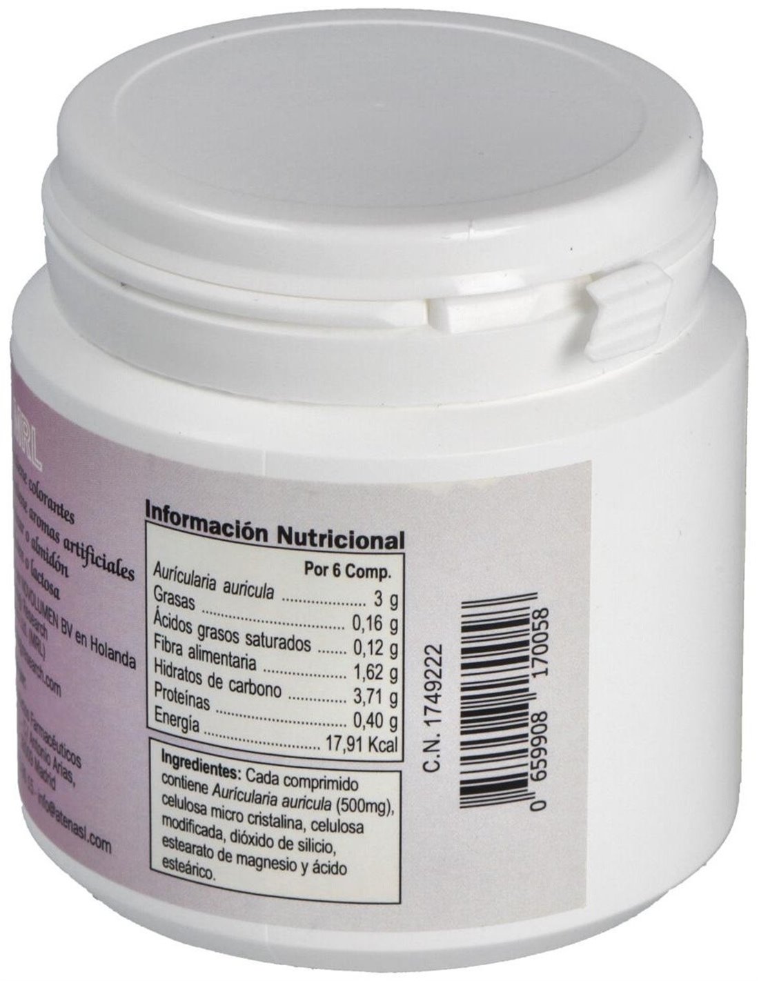 Por 1 comprimido: Auricularia (auricularia auricular) polvo de biomasa.... 500 mg Celulosa microcristalina, celulosa modificada, dióxido de silicio, estearato de magnesio, ácido esteárico.