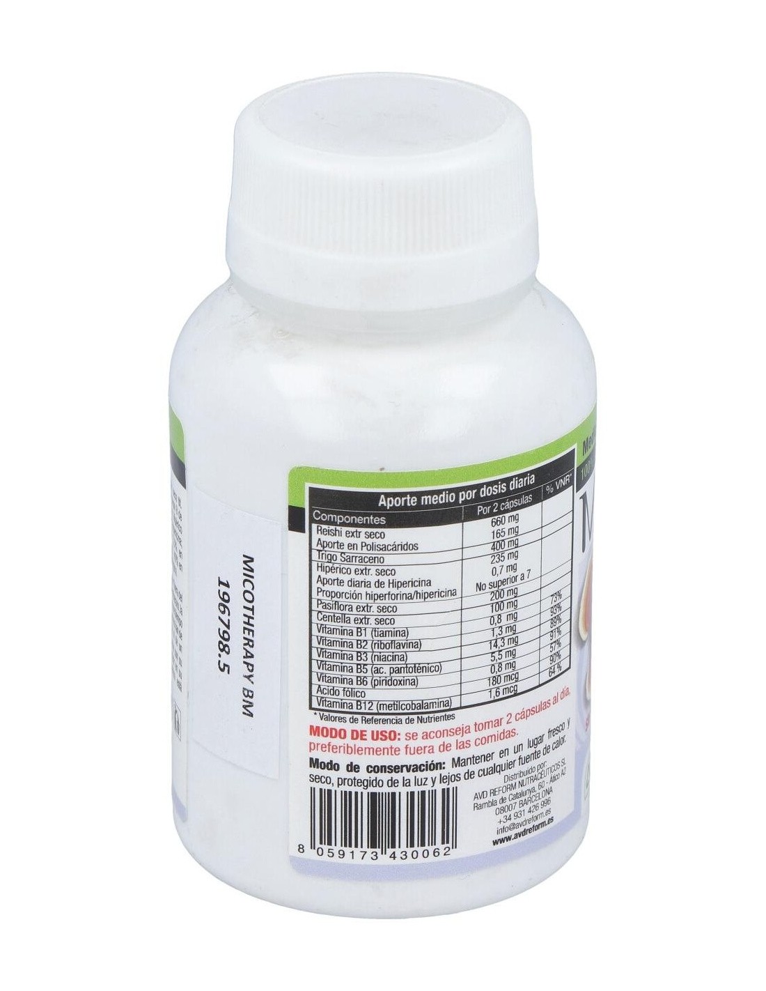 Complemento alimenticio a base de Reishi e hipérico. Este hongo es usado desde antiguo por la medicina tradicional china. El hipérico es un relajante natural que favorece la calma física y mental. Reduce y controla el estrés, aporta serenidad y favorece un sueño placentero. Es de agricultura ecológica.