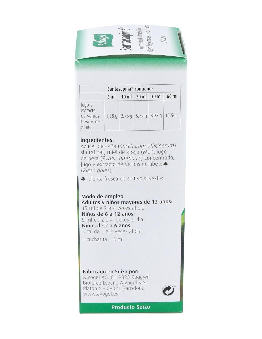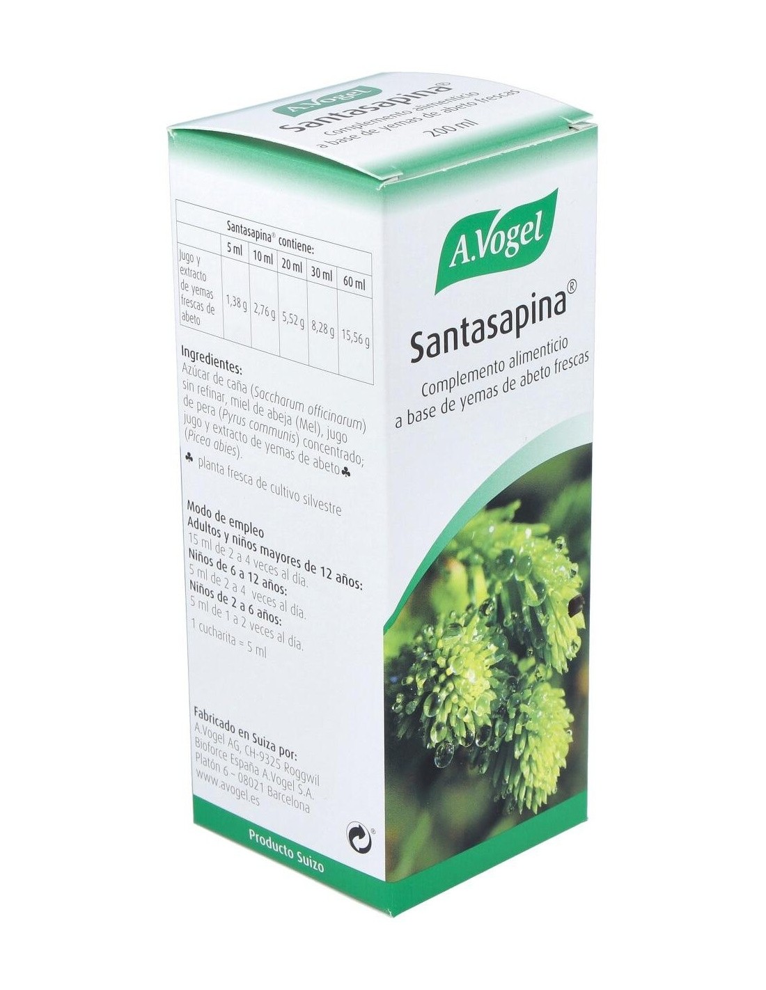 En la fabricación de este jarabe se utilizan los brotes frescos de las yemas de abeto de propiedades balsámicas, antitusígenas y expectorantes.Santasa