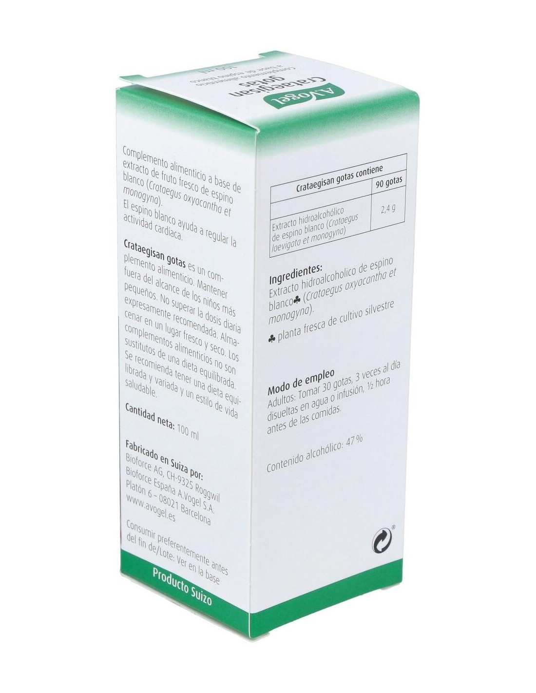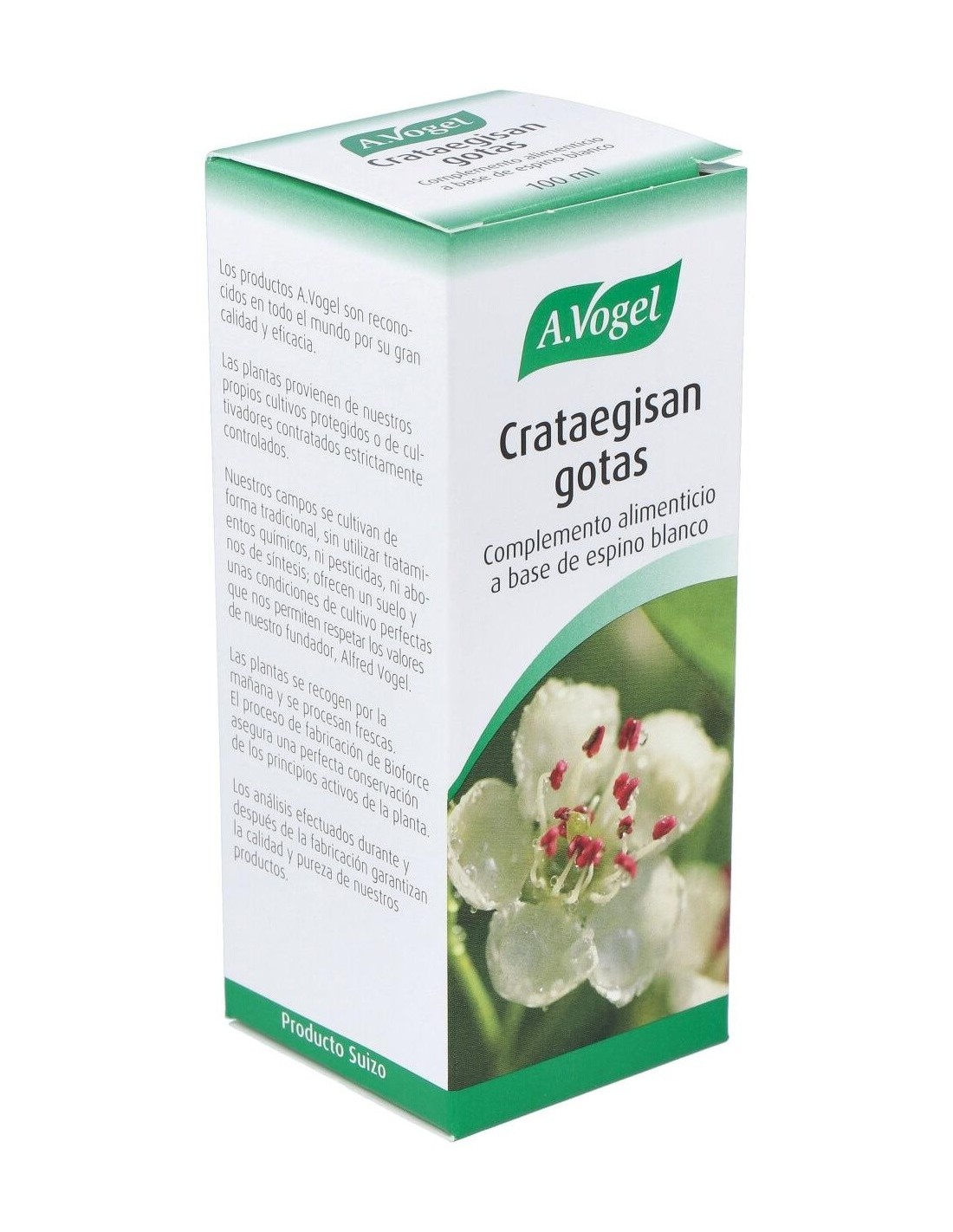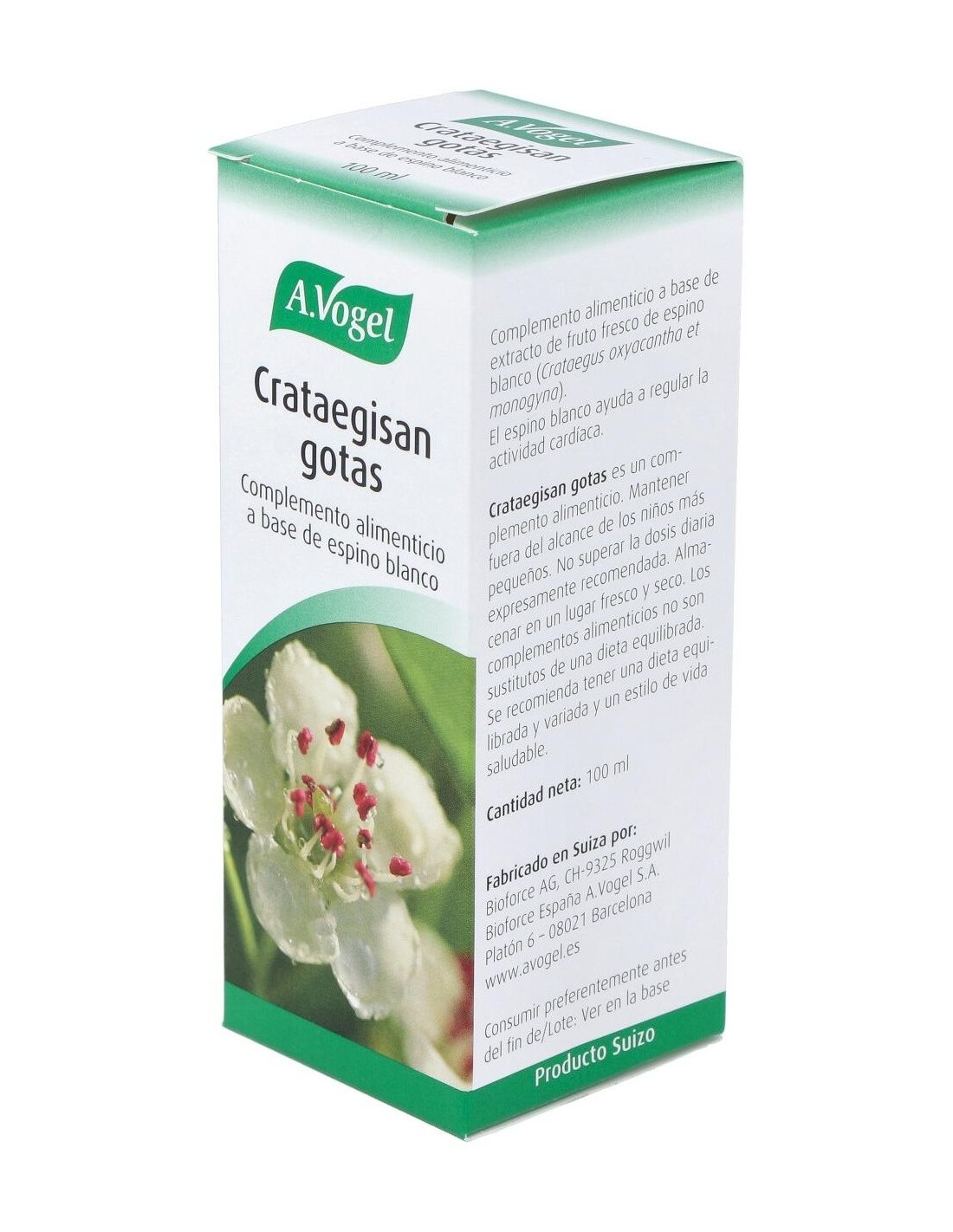 Crataegisan Gotas Ml 100 de A.Vogel es un complemento natural para adultos que apoya la salud cardiovascular, formulado a partir de extractos de espino blanco para contribuir al bienestar del corazón.