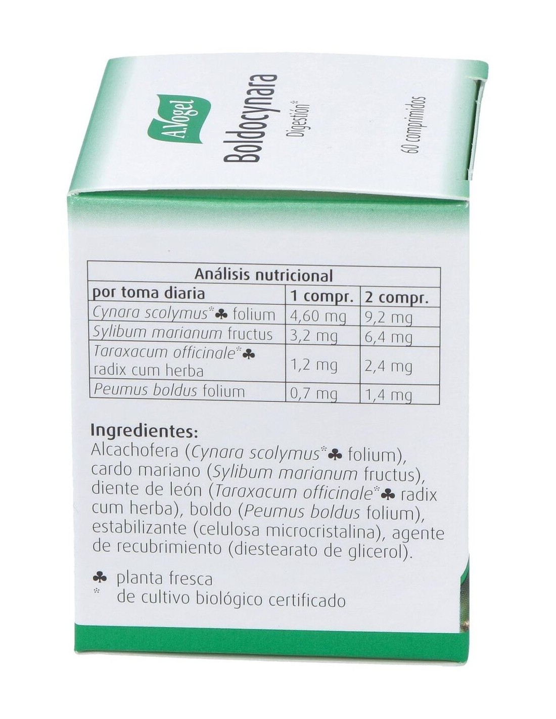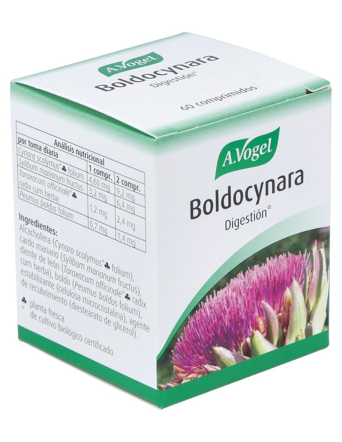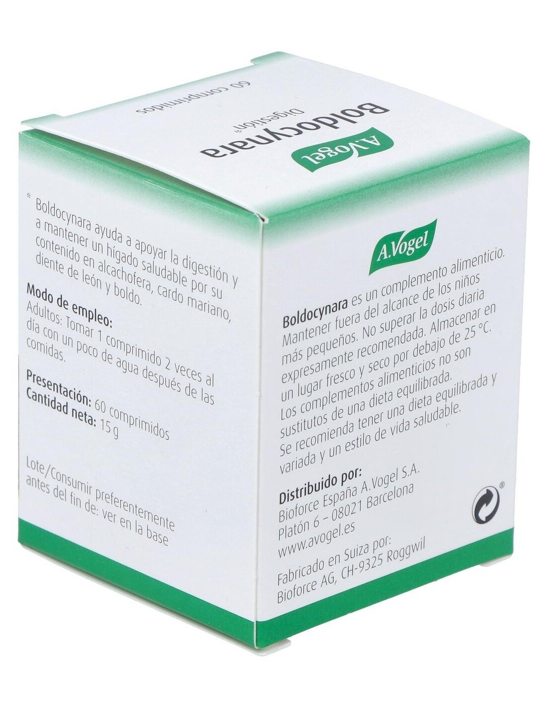 Boldocynara Comp. 60 de A.Vogel es un complemento natural para personas que buscan apoyar la función digestiva, formulado con extractos de boldo y alcachofa que contribuyen al bienestar hepático y digestivo.