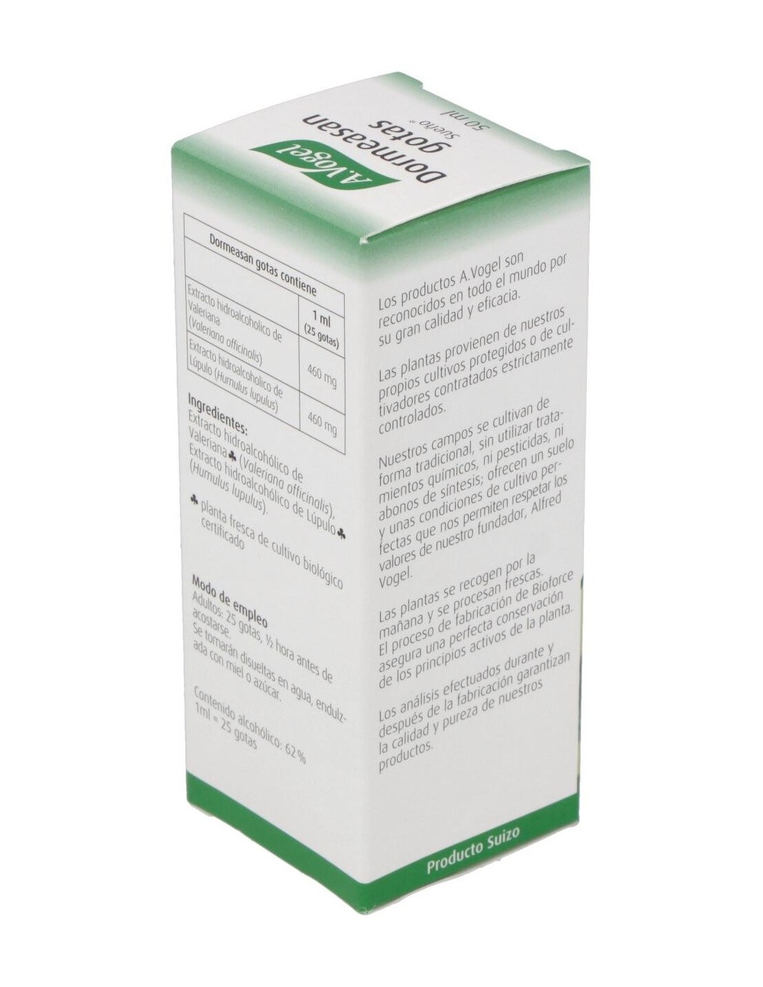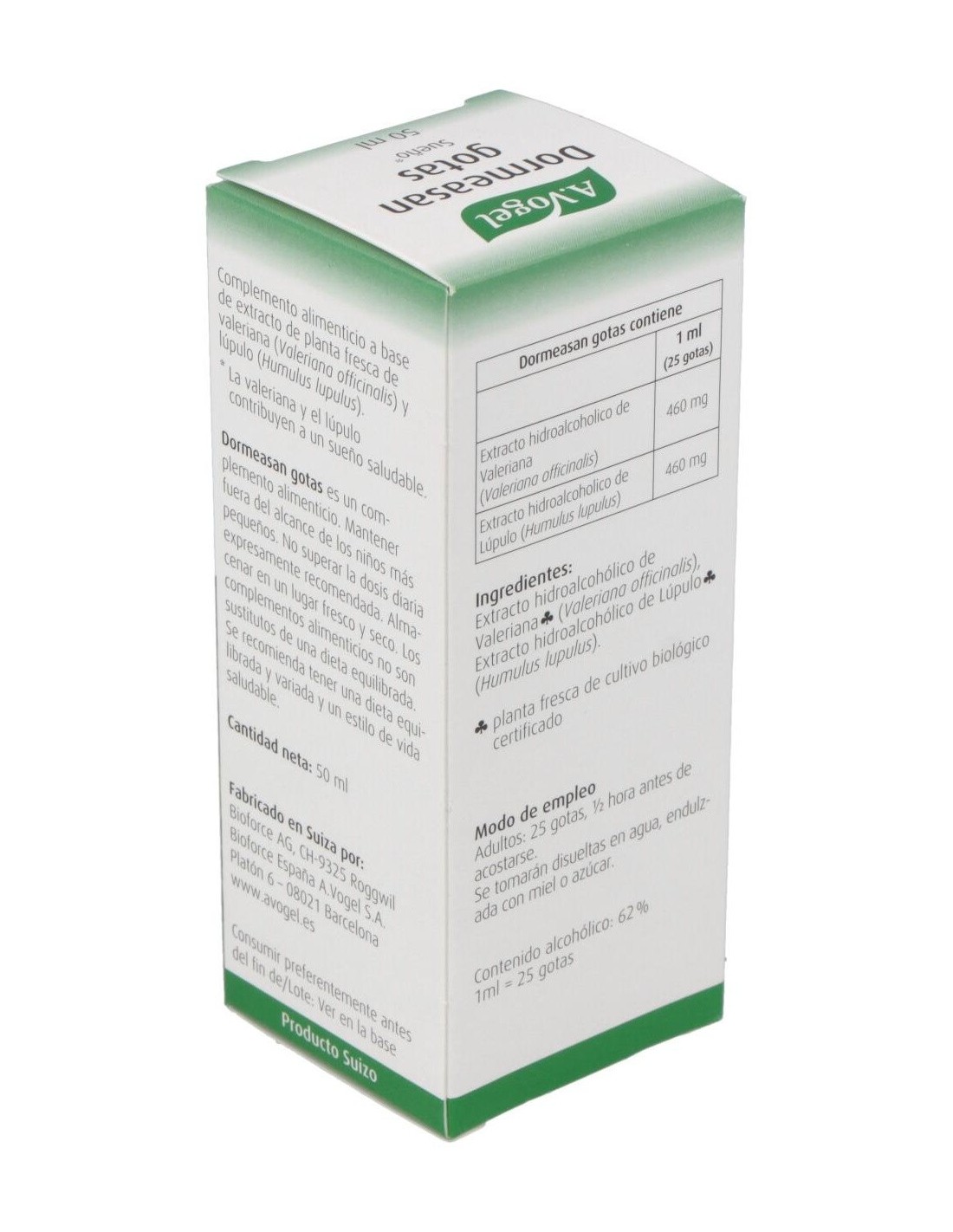 Dormeasan Gotas Ml 50 de A.Vogel es un complemento natural para personas que buscan apoyar su bienestar y equilibrio emocional, formulado con ingredientes botánicos que contribuyen a la relajación y al descanso.