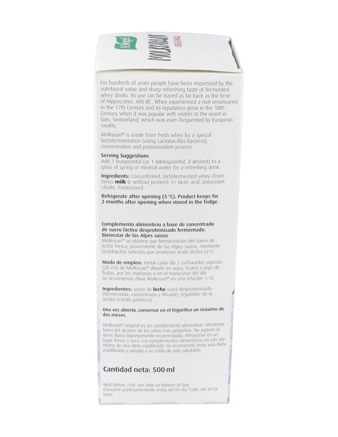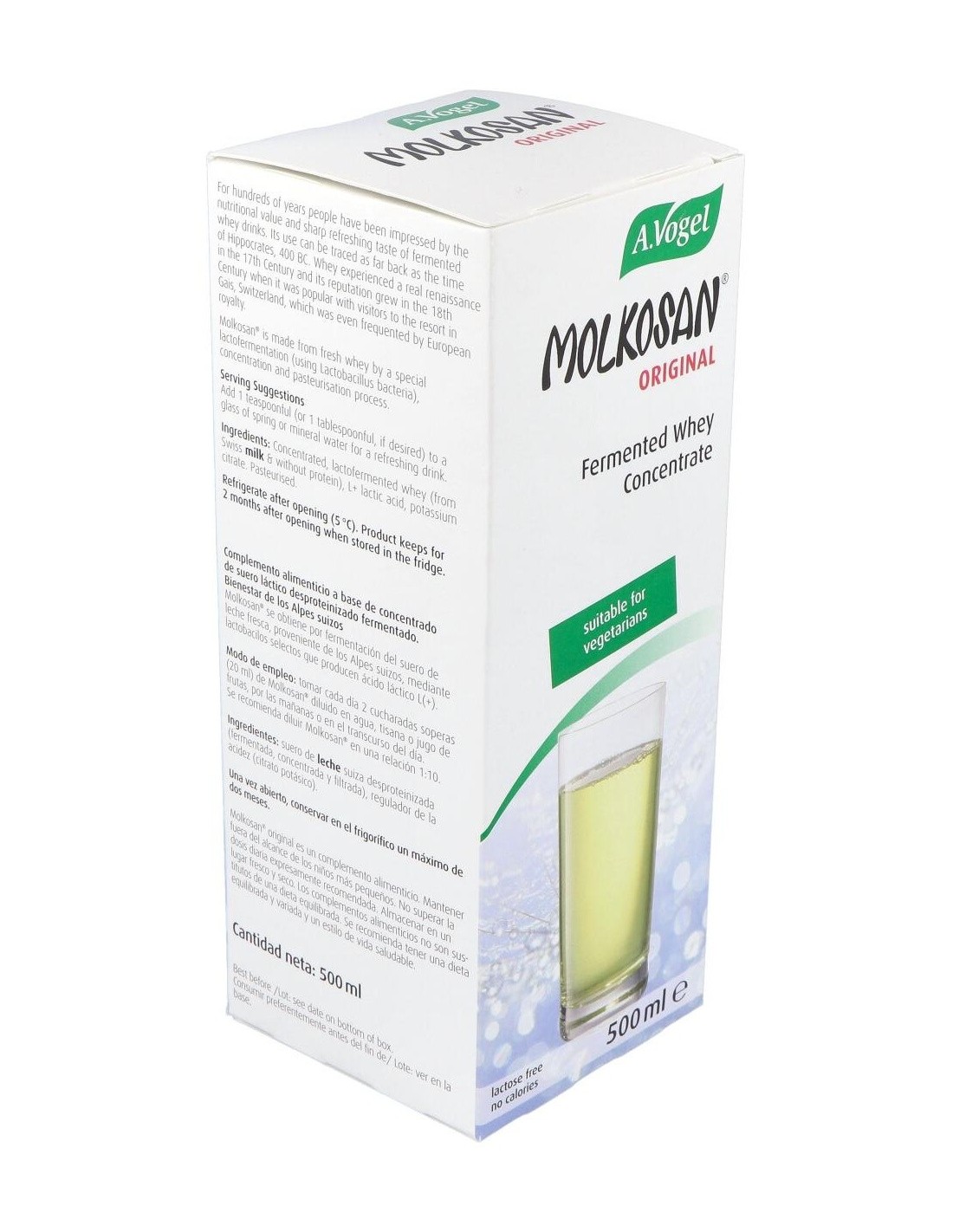 Molkosan Original Ml 500 de A.Vogel es un suplemento natural para personas que buscan apoyar su digestión diaria, formulado con fermentado láctico que contribuye al equilibrio intestinal.