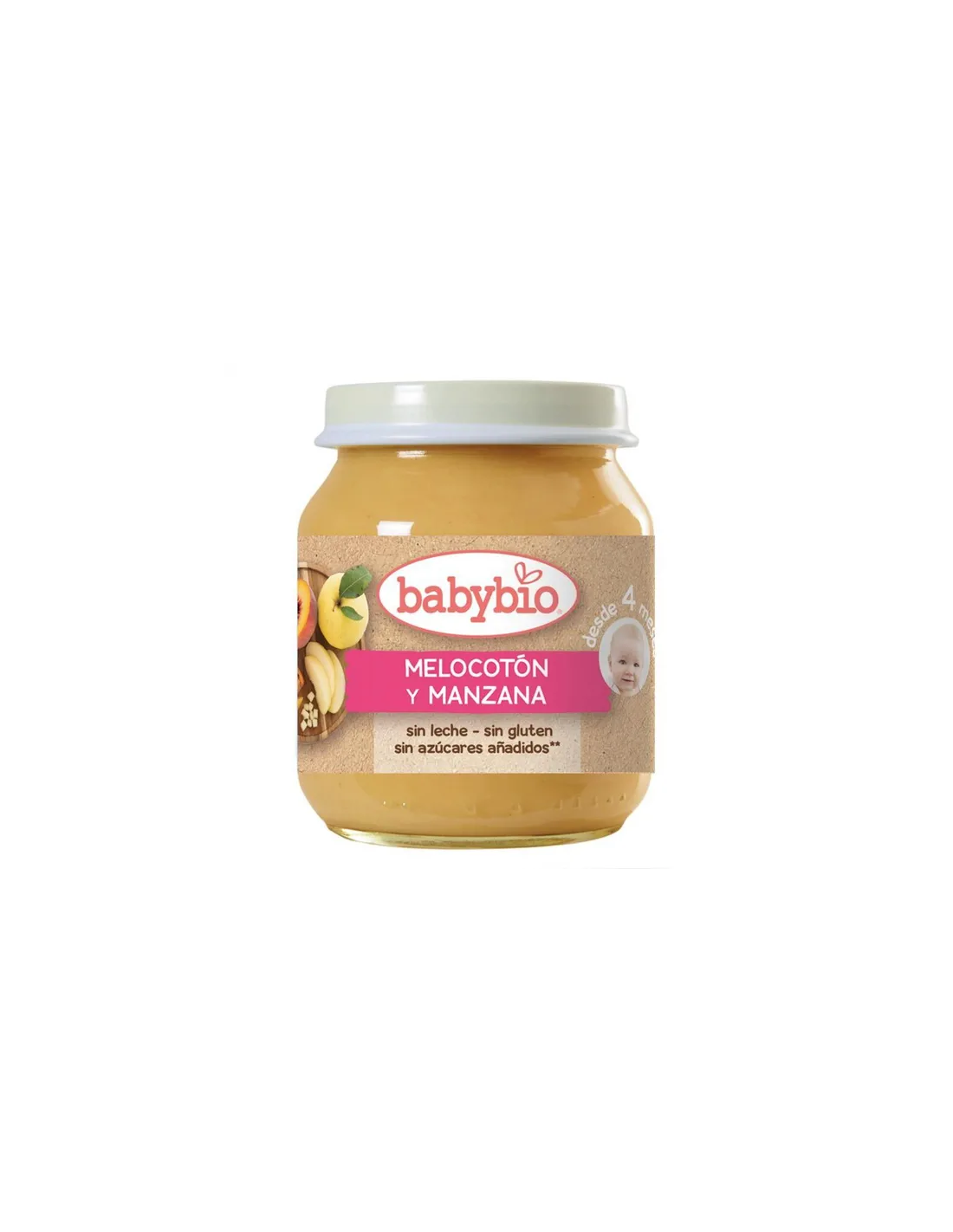 El Potito Melocotón y Manzana 4 Meses 130Gr. Bio Sg de Babybio está diseñado para bebés a partir de los cuatro meses, ofreciendo una opción nutritiva y adaptada a sus primeras etapas de alimentación complementaria. Este potito combina ingredientes de origen biológico para aportar una textura suave y un sabor natural que facilita la introducción de frutas en la dieta infantil.