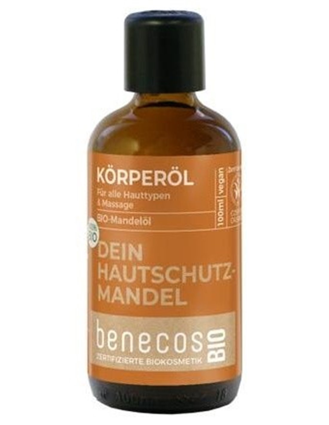 BENECOSEl valioso aceite de almendras BenecosBIO prensado en frío es adecuado para todo tipo de pieles gracias a sus propiedades nutritivas y su alto nivel de tolerancia. Protege contra la desecación y retiene la humedad. También calma la piel sensible, reduce el enrojecimiento y favorece la regeneración. Gracias al alto contenido de ácido oleico, su piel se siente suave y flexible. No Contiene Ingredientes animales/ no testado en animales. No Contiene aceites minerales derivados del petróleo. Sin conservantes, colorantes ni perfumes sintéticos. Producto certificado COSMOS ORGANIC. Fórmula vegana.