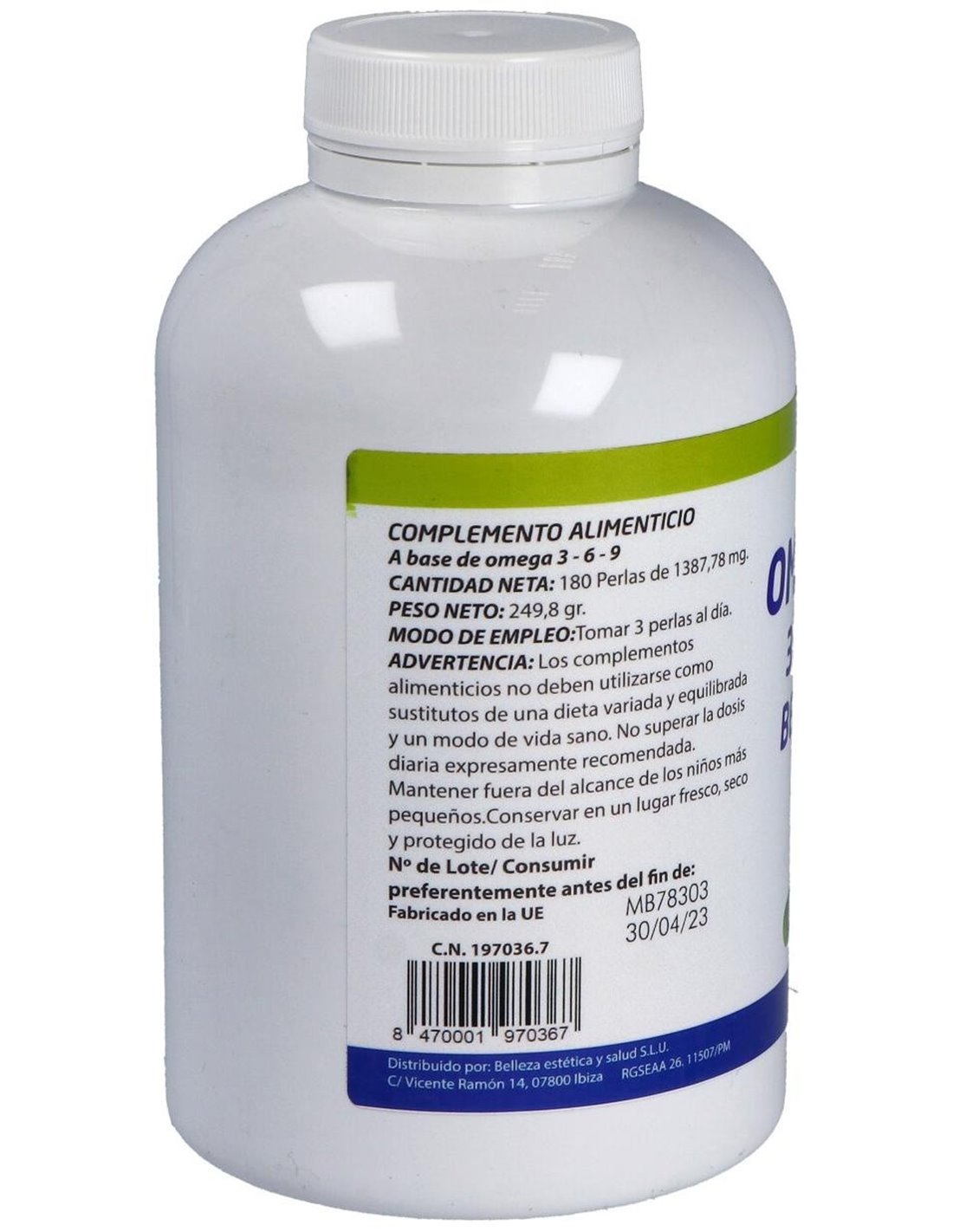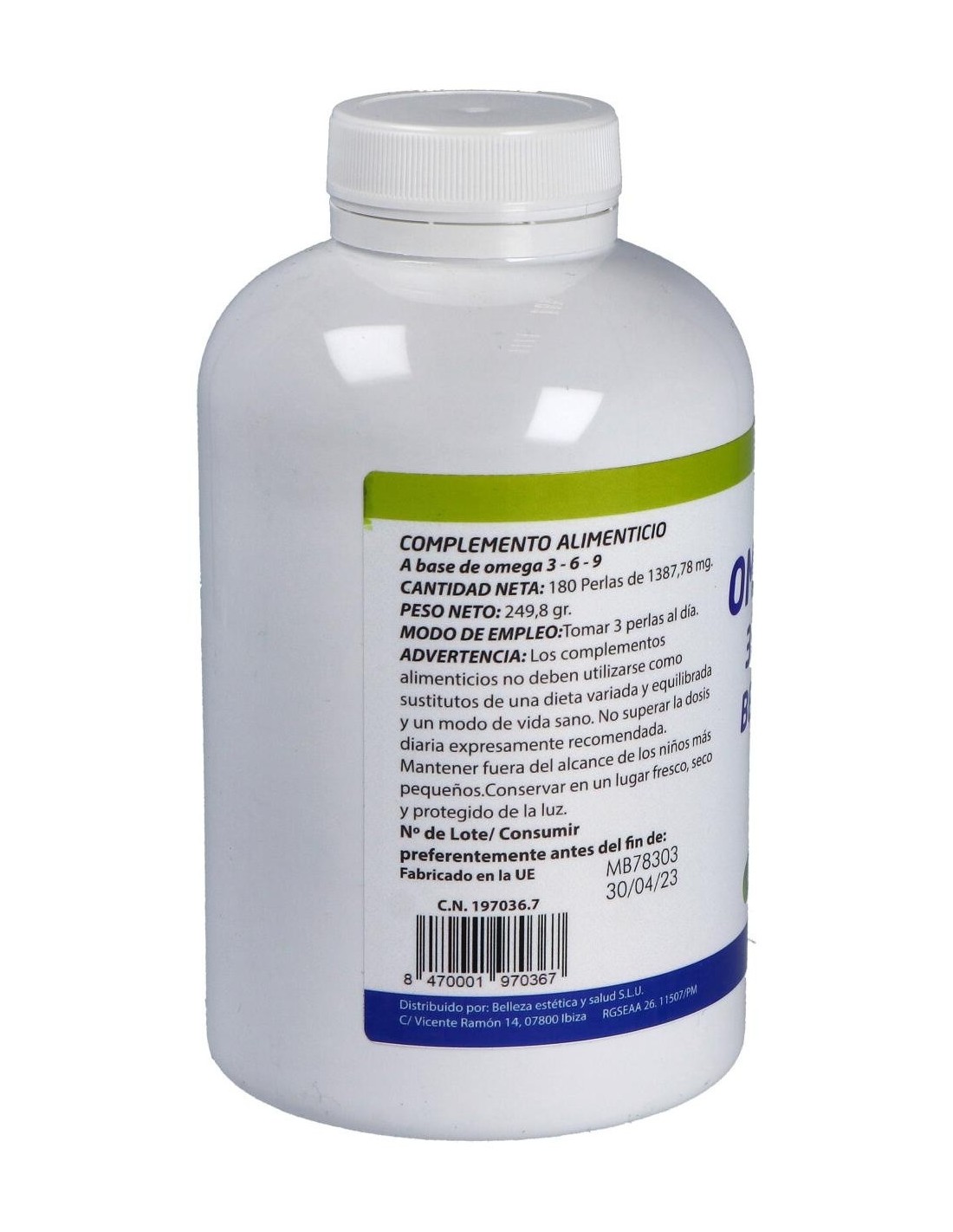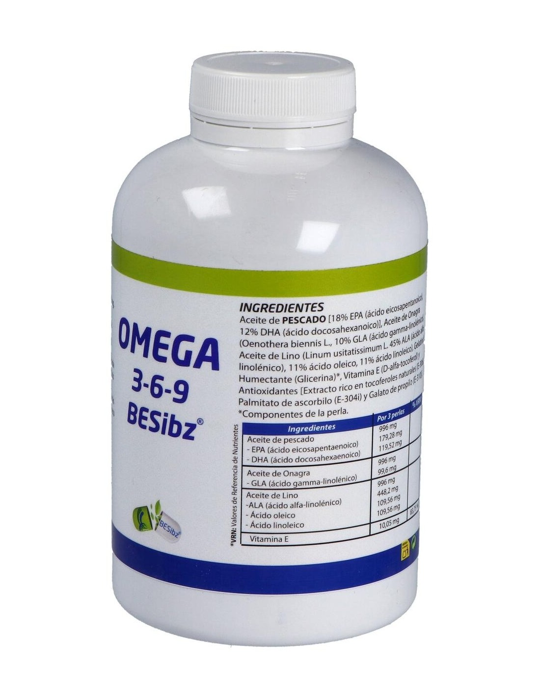 Ingredientes:Aceite de Pescado [18% EPA (ácido eicosapentanoico), 12% DHA (ácido ocosahexanoico)], Aceite de Onagra (Oenothera biennis L., 10% GLA (ácido gamma-linolénico), Aceite de Lino (Linum usitatissimum L. 45% ALA (ácido alfa-linolénico), 11% ácido oleico, 11% ácido linoleico), Gelatina*, Humectante (Glicerina)*, Vitamina E (D-alfa-tocoferol) y Antioxidantes [Extracto rico en tocoferoles naturales (E-306), Palmitato de ascorbilo (E-304i) y Galato de propilo (E-310). (*) Componentes de la perla.Modo de empleo:Tomar 3 perlas al día.Presentación:Envase de 180 perlas.