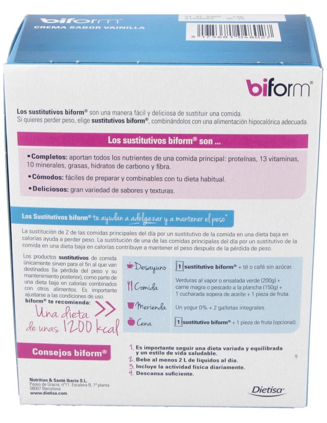 La Crema Vainilla Envase 6 Sobres de Biform® ofrece una alternativa conveniente para quienes buscan complementar su dieta con una opción práctica y de fácil preparación.