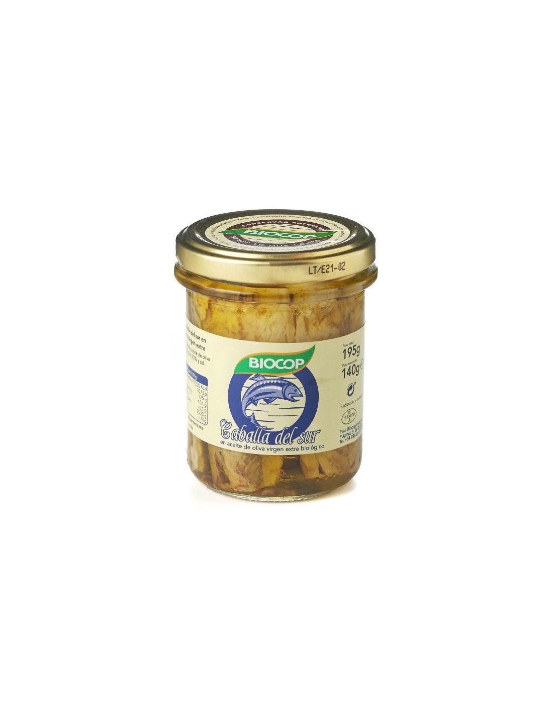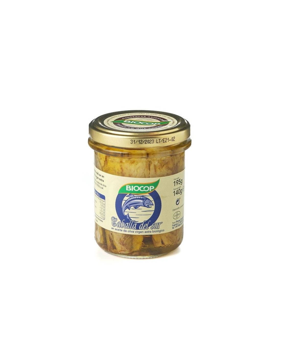 Ingredientes:Caballa, aceite de oliva virgen extra* 35%, sal marina. (*) De cultivo ecológico.Valor nutricional por 100 gramos: