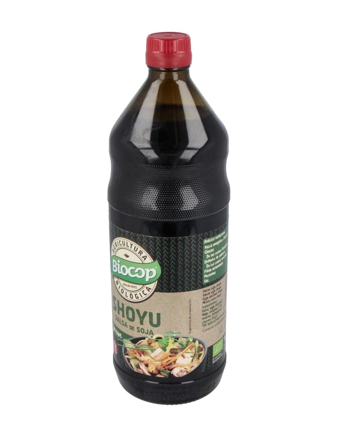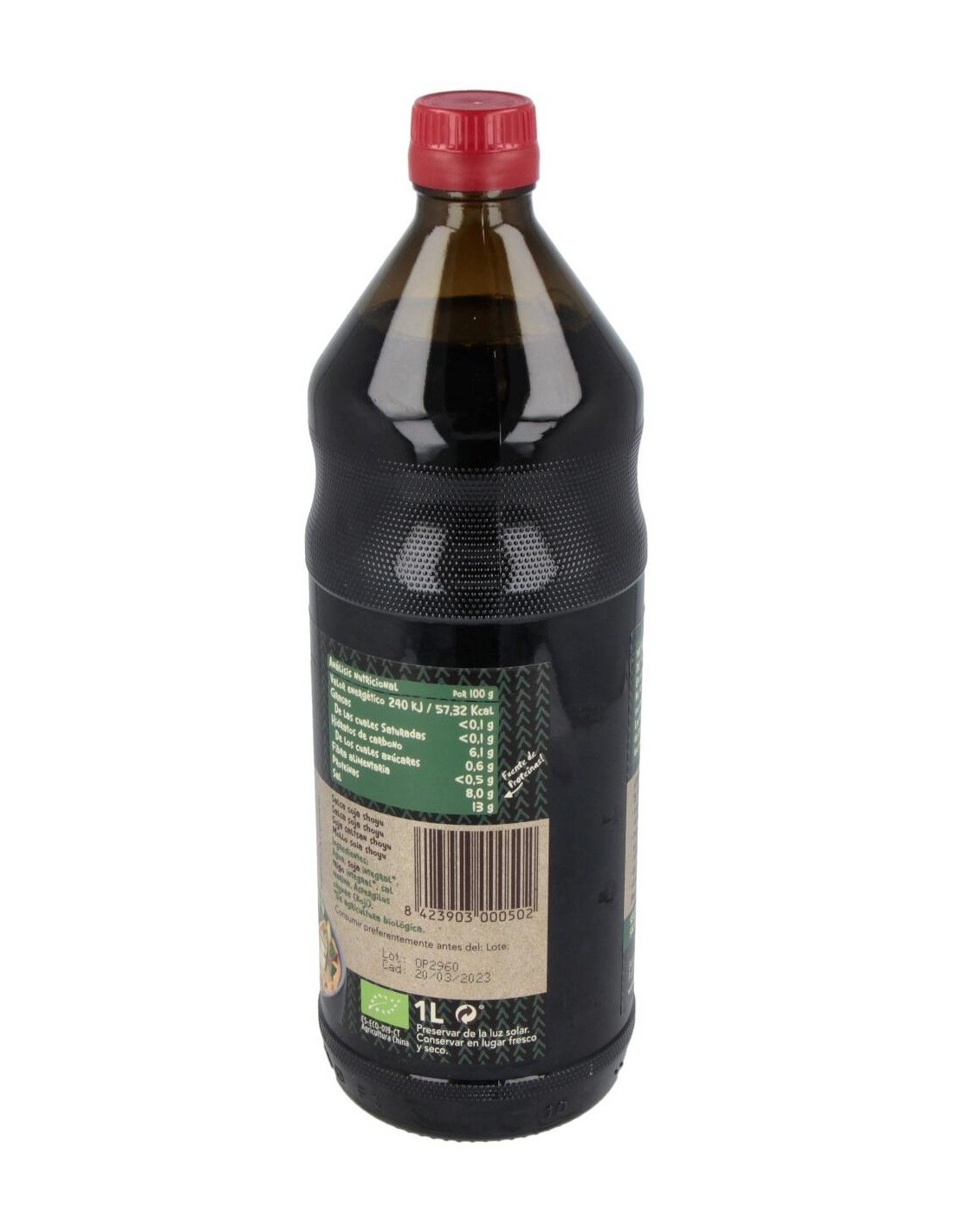 Ingredientes:Agua, Soja*, Trigo integral*, sal marina, Aspergillus oryzae (koji). (*) De cultivo ecológico.Valor nutricional por 100 gramos: