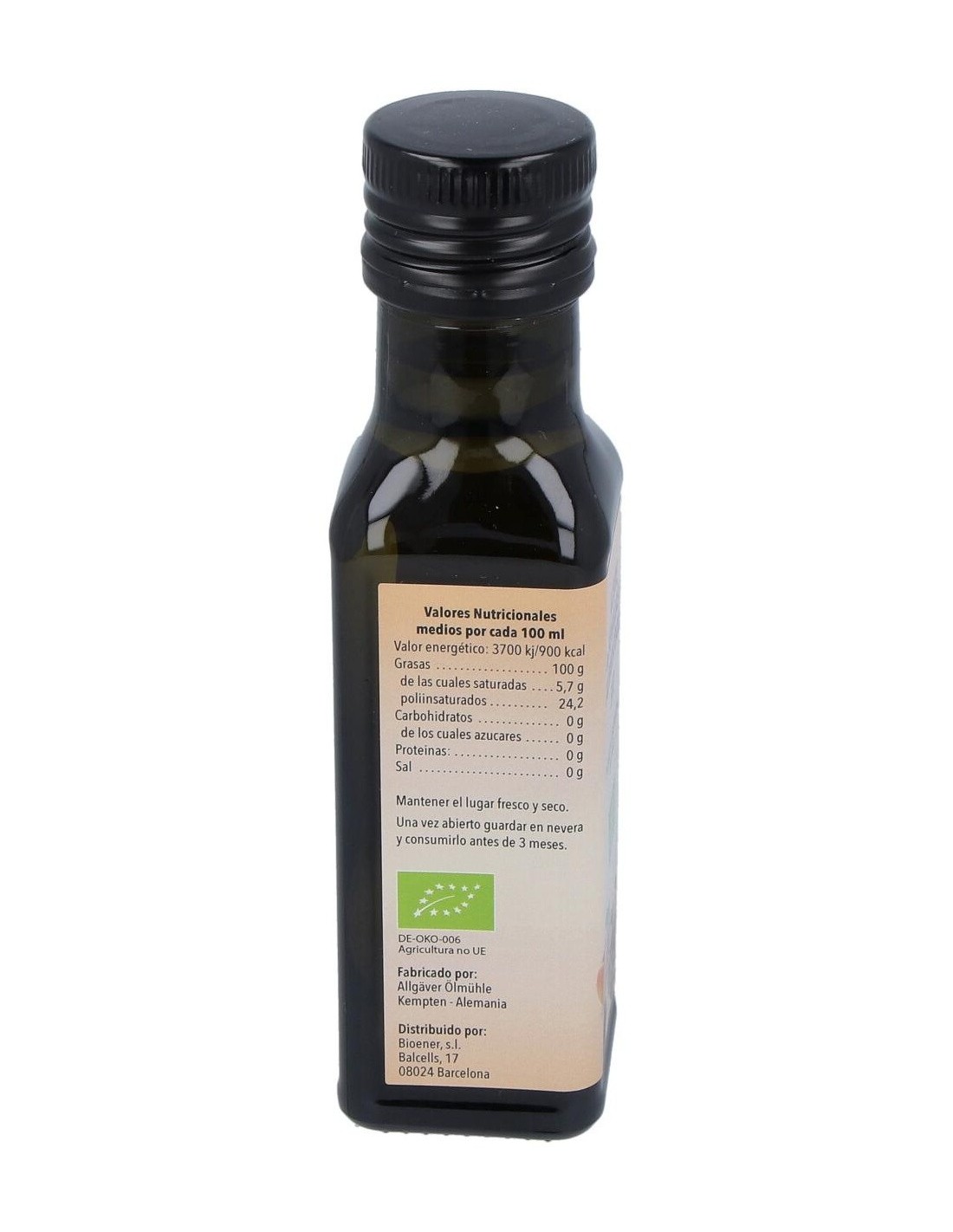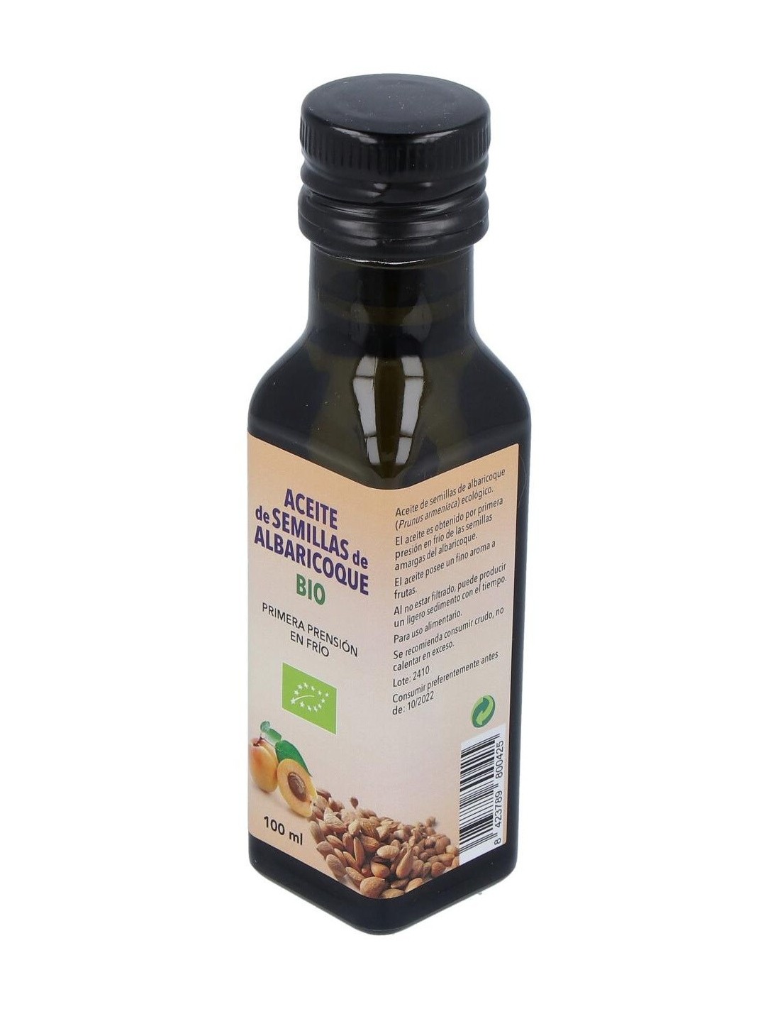 Aceite de semilla de albaricoque con certificación biológica para uso alimentario.