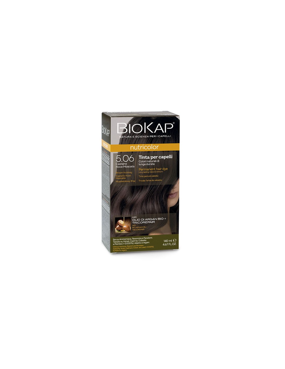 Características y Beneficios del Pack 12 Uds. Nutricolor 5,06 Castaño Nuez Moscada 140 ml de Biokap