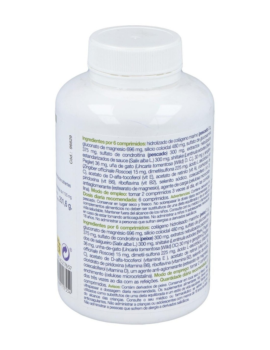 El producto está elaborado con ingredientes seleccionados para favorecer la absorción y biodisponibilidad, presentados en comprimidos de tamaño adecuado para su consumo. Su diseño permite una administración práctica, ideal para quienes buscan complementar su alimentación con un aporte específico para el cuidado de sus articulaciones y músculos.