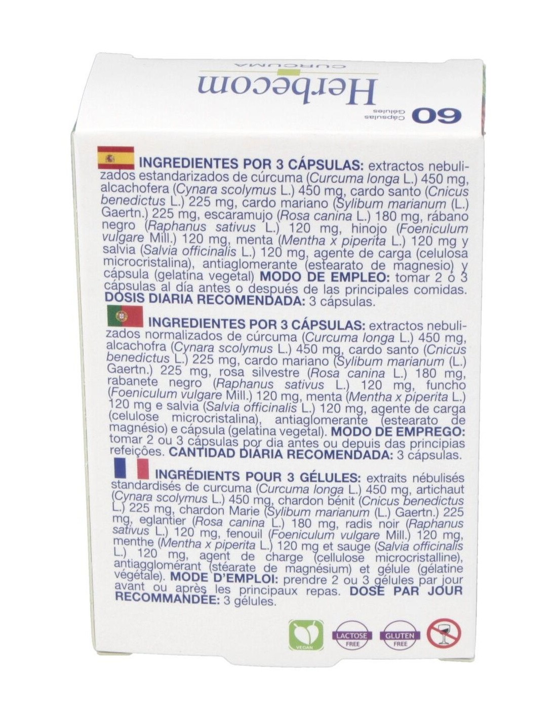 Herbecom Curcuma 60Cap. de Bioserum ofrece una opción práctica para quienes desean complementar su alimentación con extractos naturales de cúrcuma en una presentación dosificada y fácil de consumir.