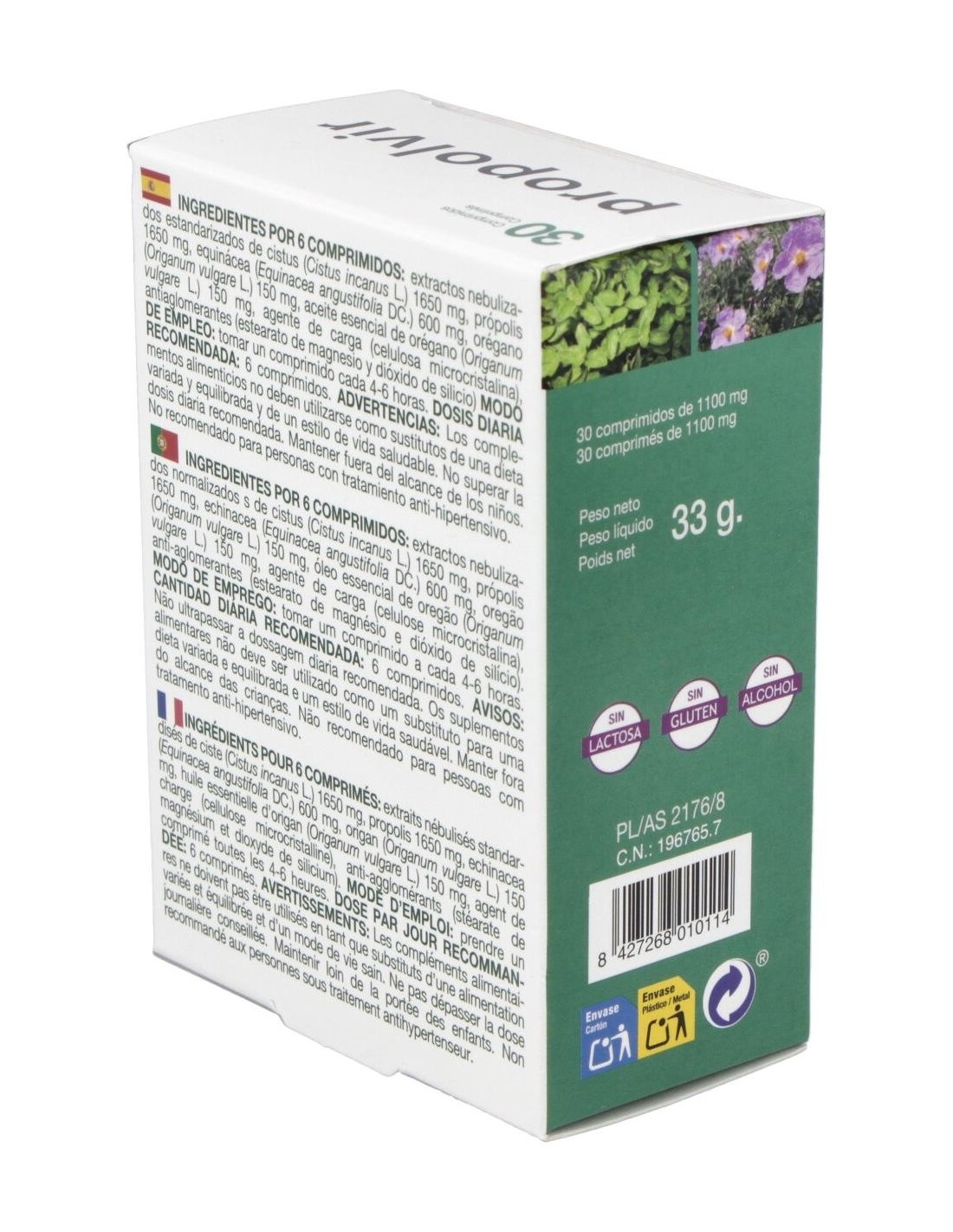 Los comprimidos de Propolvir están formulados con extractos naturales y otros componentes que cumplen con estándares de calidad. Su presentación en envase de 30 unidades permite un suministro para un periodo determinado, ideal para quienes buscan complementar su dieta habitual con productos de origen natural.