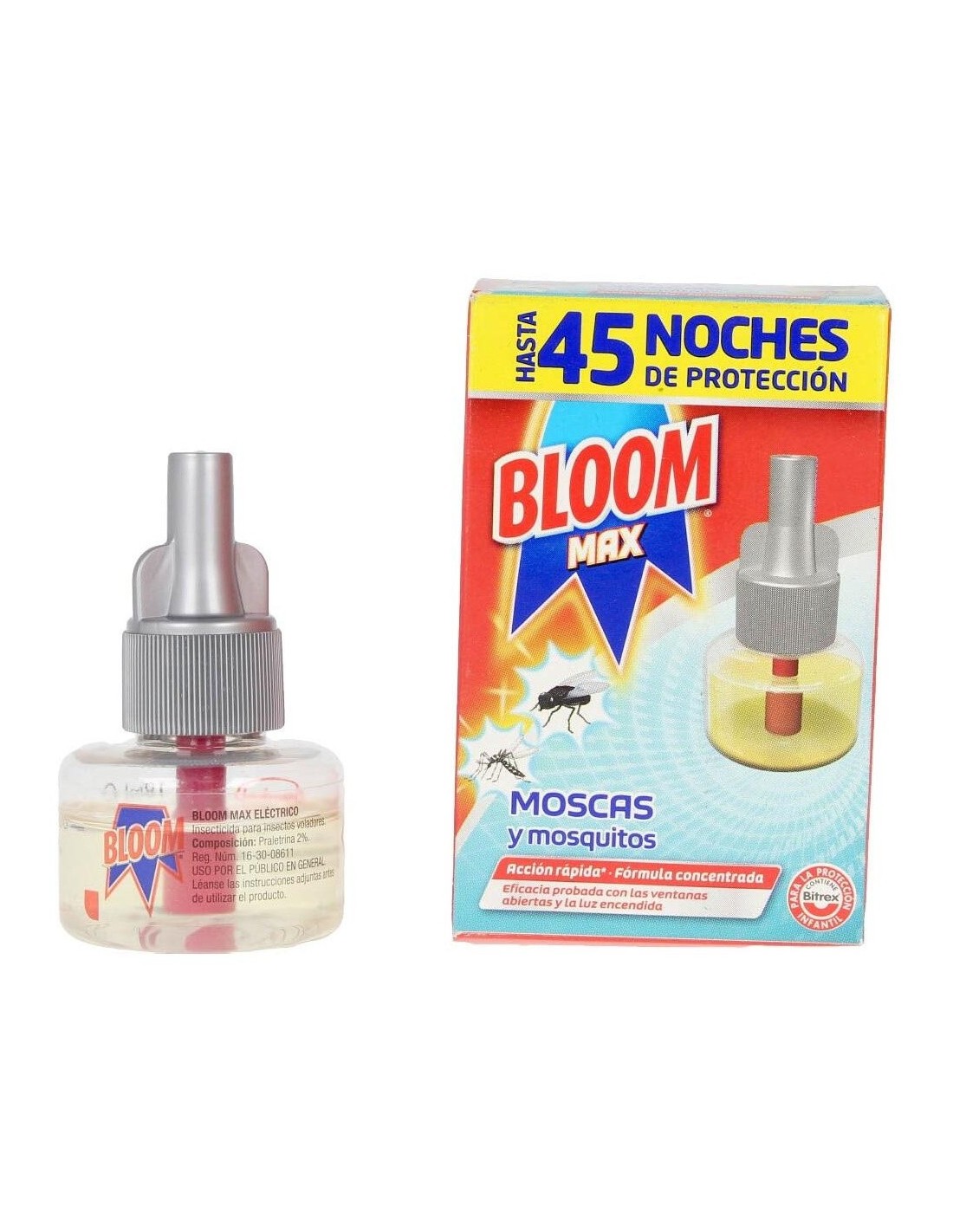 Bloom Max Moscas & Mosquitos Rec. Eléctrico Líquido 18ml es un recambio para el aparato eléctrico que contribuye a eliminar mosquitos.