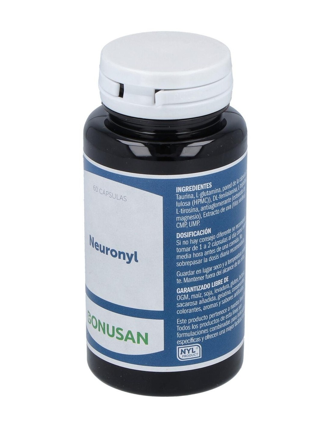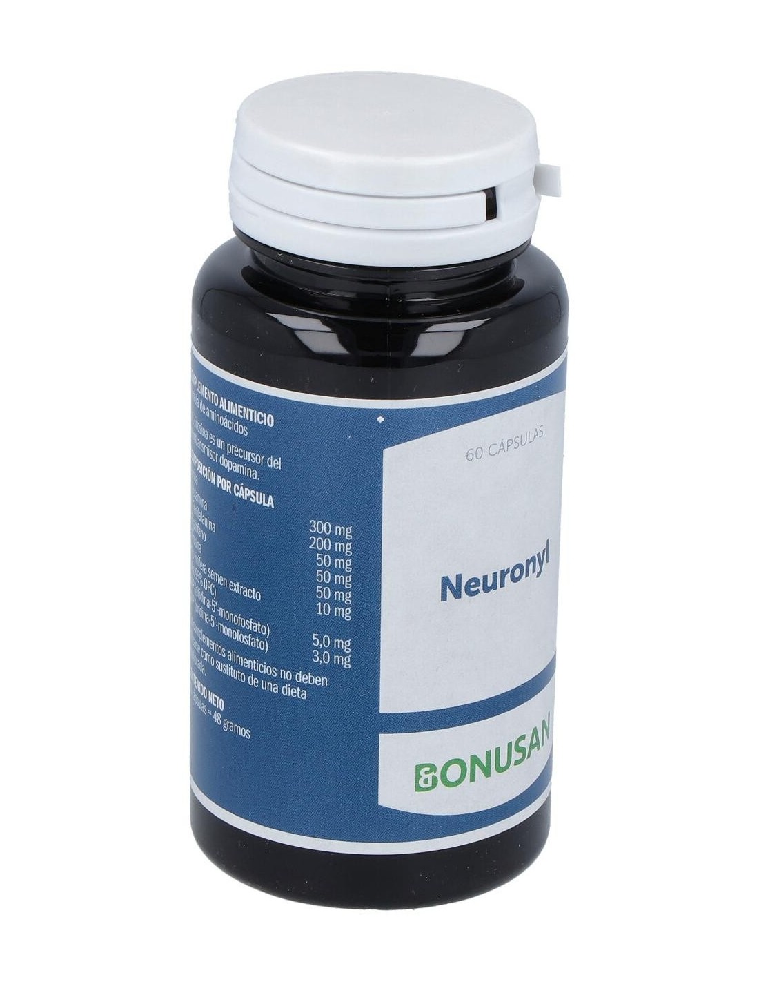 Neuronyl 60Vcap. de Bonusan es un suplemento nutricional para personas que buscan apoyar la función cerebral, formulado con ingredientes que contribuyen al mantenimiento cognitivo y neurológico.