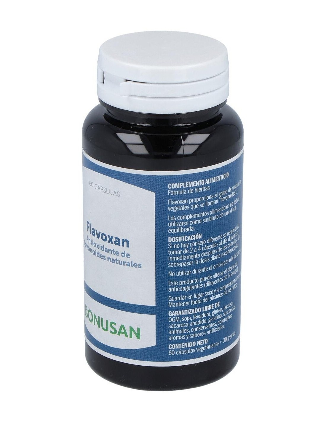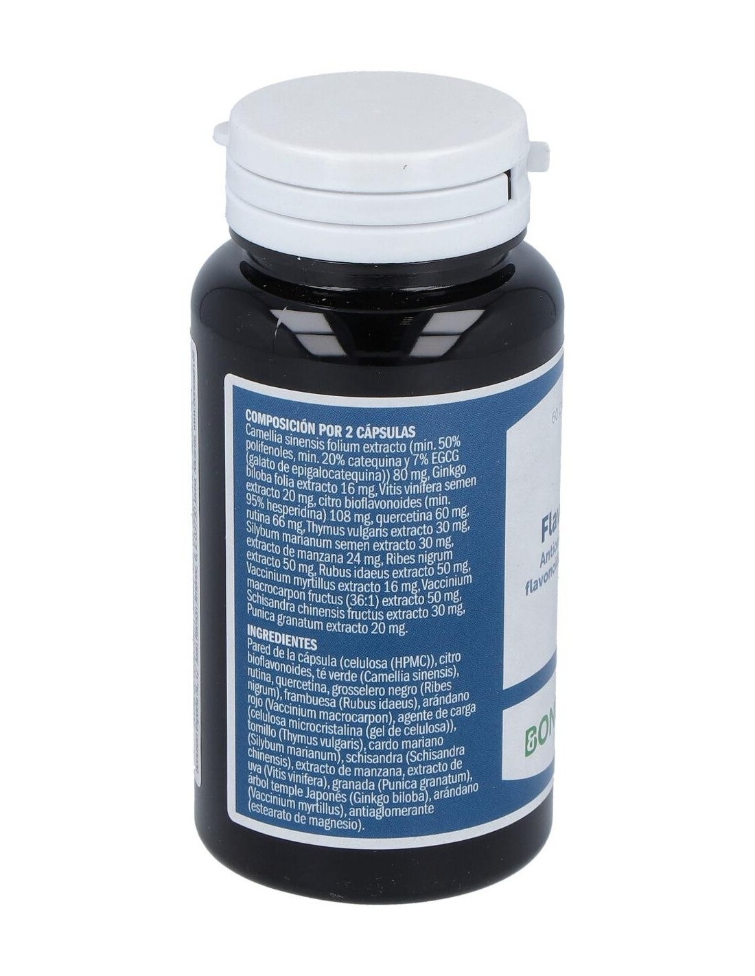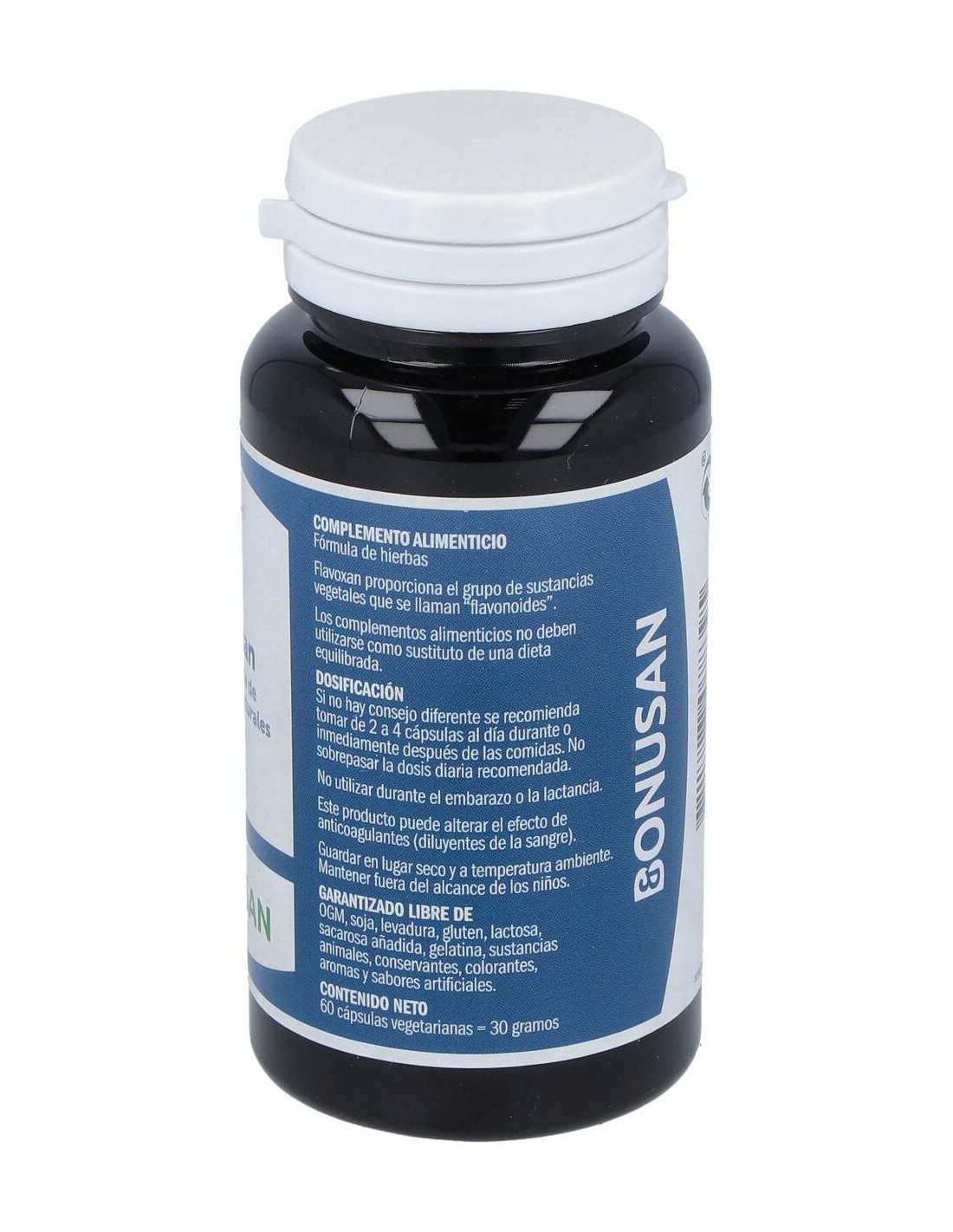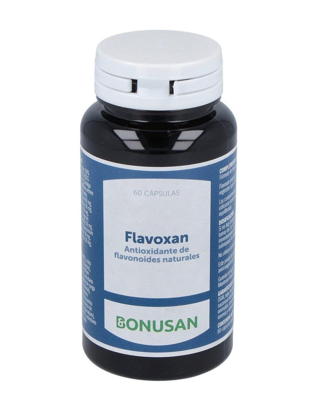 Cuando los árboles y las hierbas florecen, un extra de flavonoides es muy útil. Flavoxan de Bonusan es un potente producto de origen vegetal que contiene camelia, tomillo y vaccinium, hierbas que proporcionan una óptima protección contra los radicales libres. El efecto antioxidante de vitis y silybum en este producto es muchas veces más potente que las vitaminas C y E. Además, Flavoxan de Bonusan está repleto de flavonoides eficaces coma la quercetina. Los flavonoides son sustancias naturales que actualmente están recibiendo mucha atención científica. Composición por 2 cápsulas: