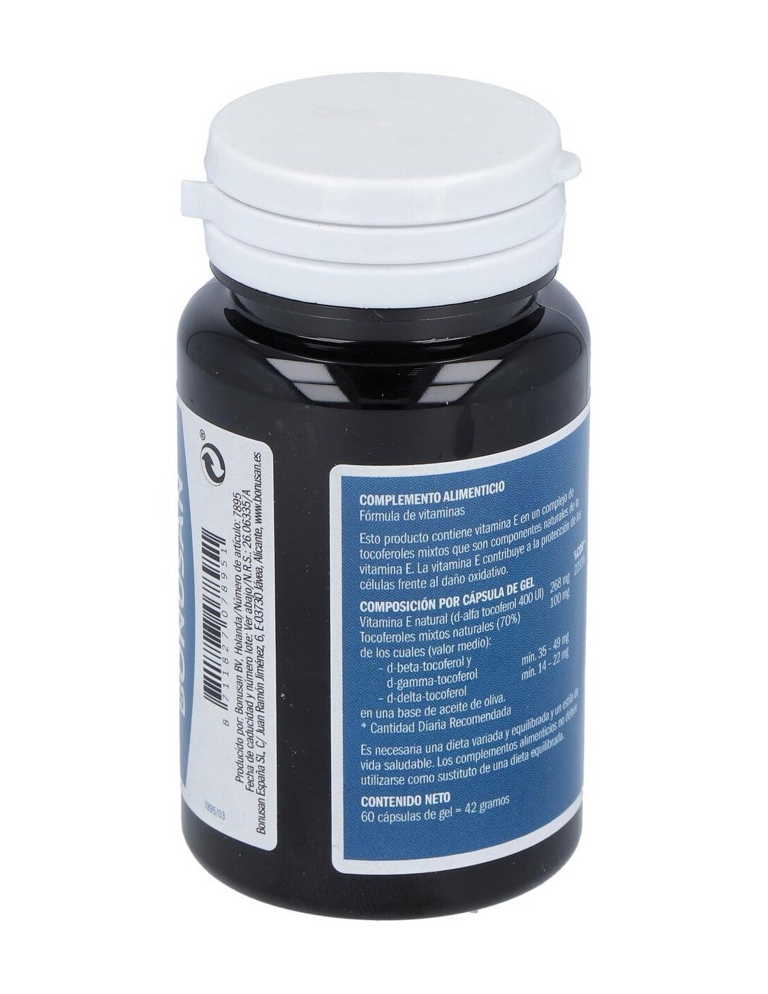 Vitamina E-400 Complejo contiene el complejo entero de vitamina E, para una mejor eficacia. La vitamina E es un antioxidante natural que protege los ácidos grasos importantes en nuestro cuerpo. Eso da lugar a que las células, incluidas las del cerebro, sean menos susceptibles a los radicales libres y aumente su eficacia durante más tiempo.
