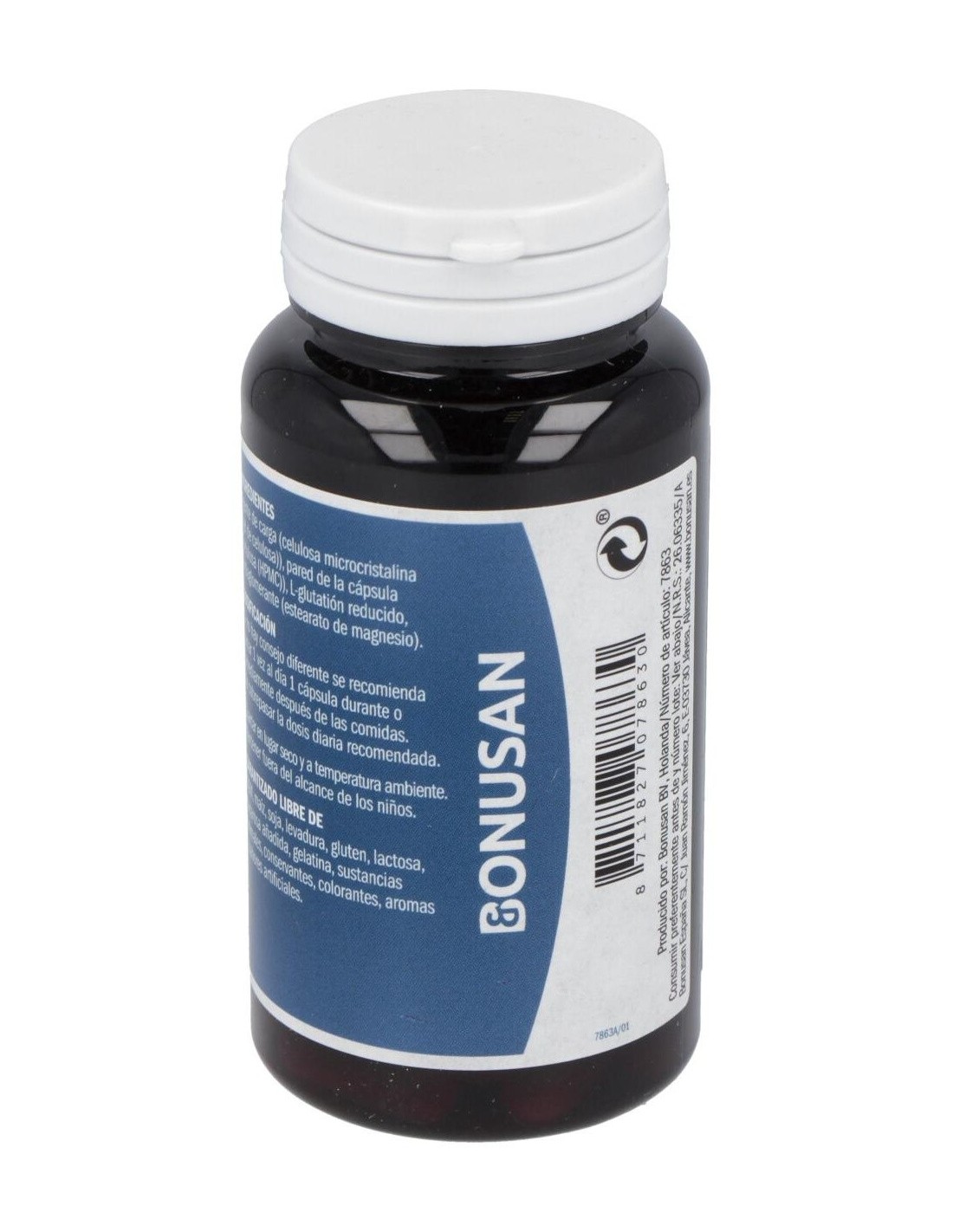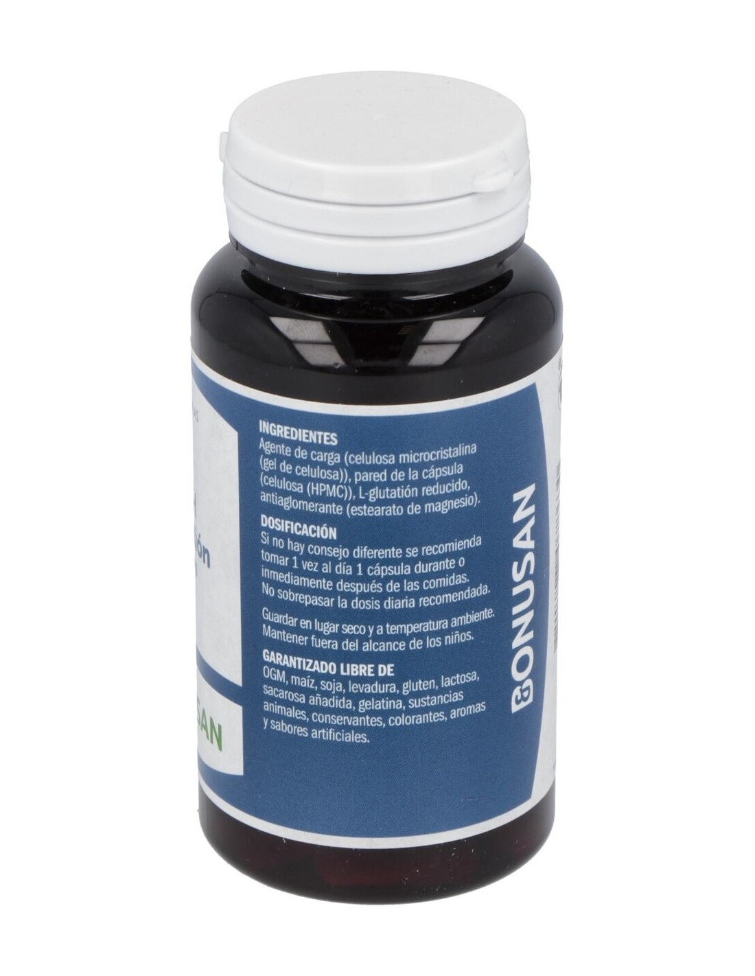 Agente de carga (celulosa microcristalina), pared de la cápsula (hidroxipropilmetilcelulosa), glutatión, antiaglomerante (sales magnésicas de ácidos grasos).
