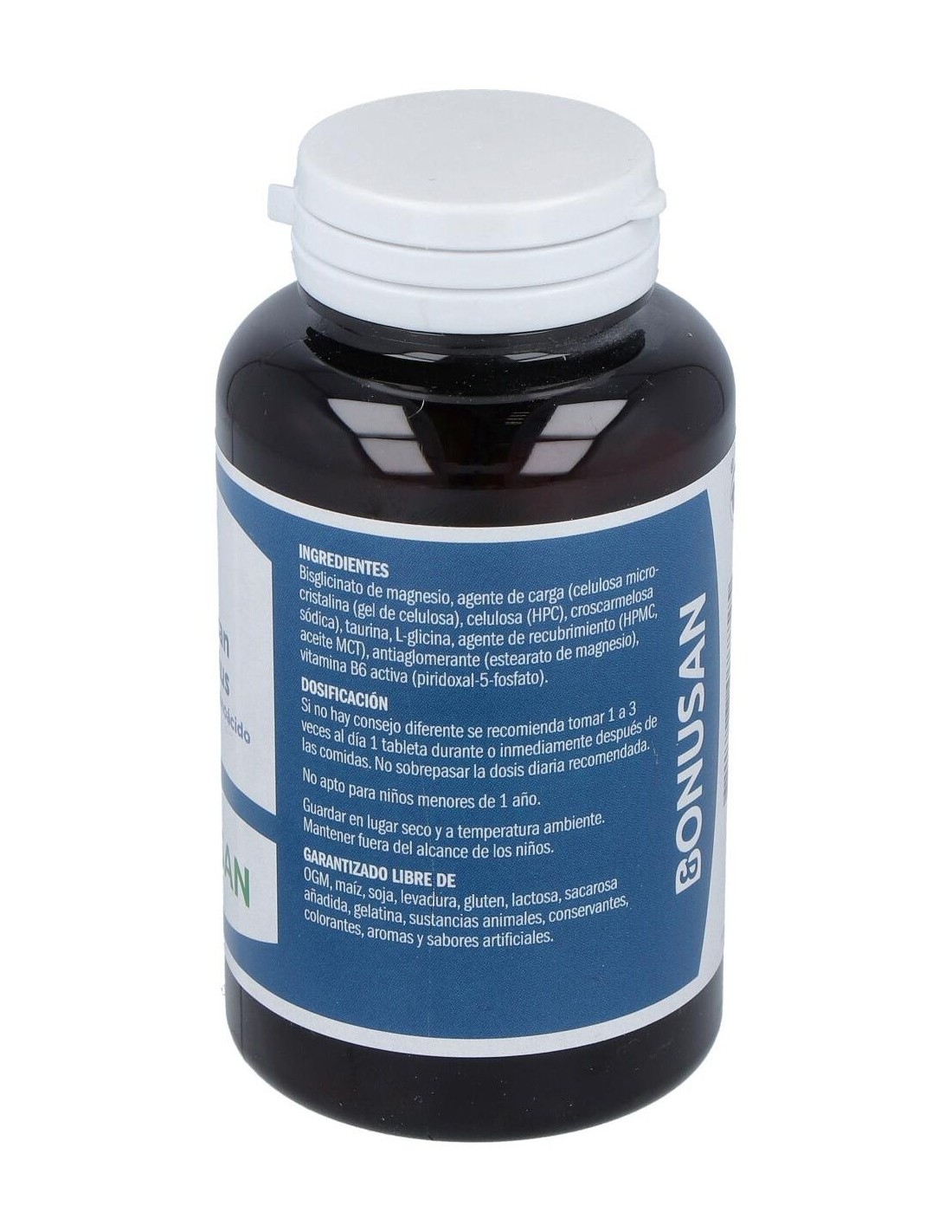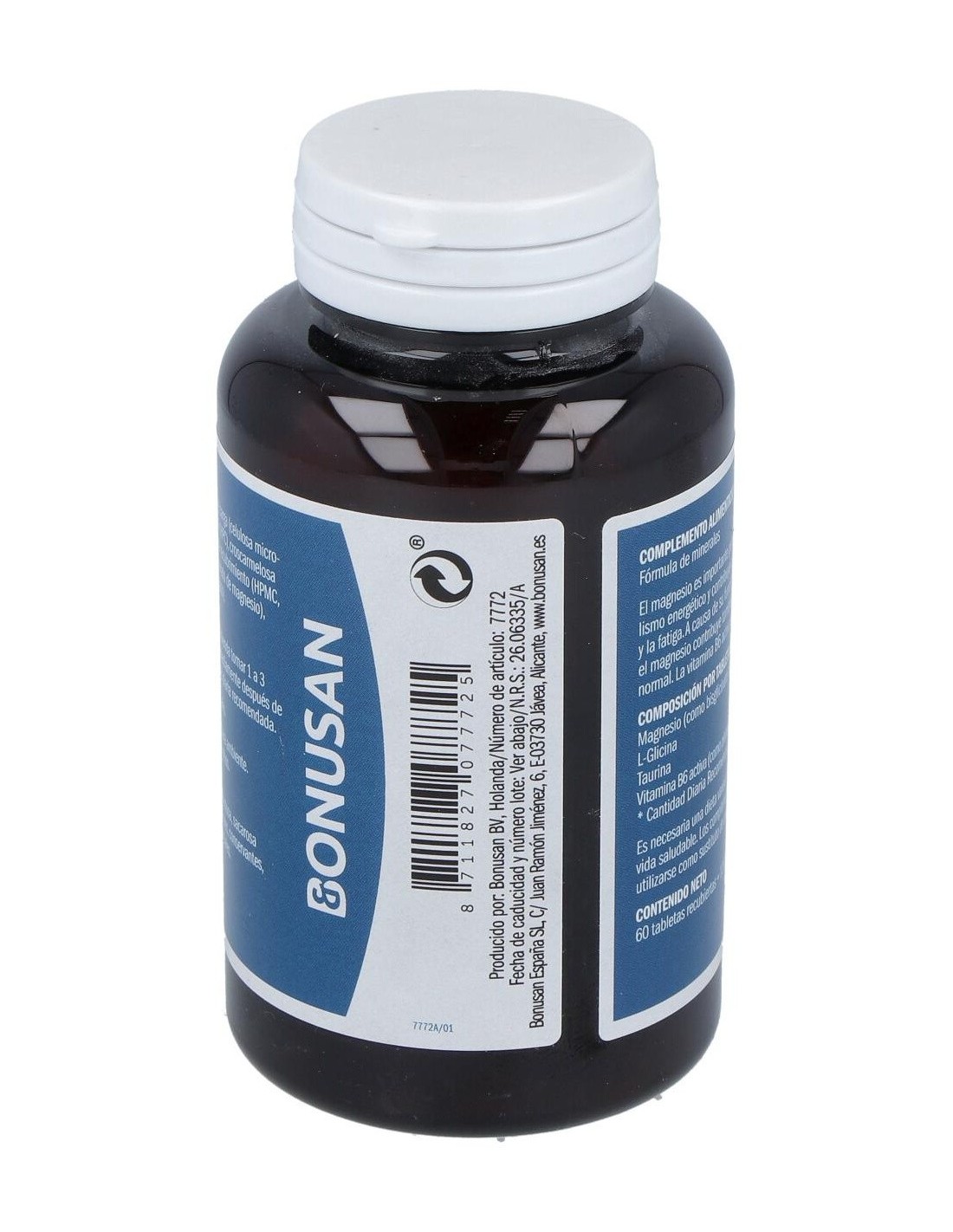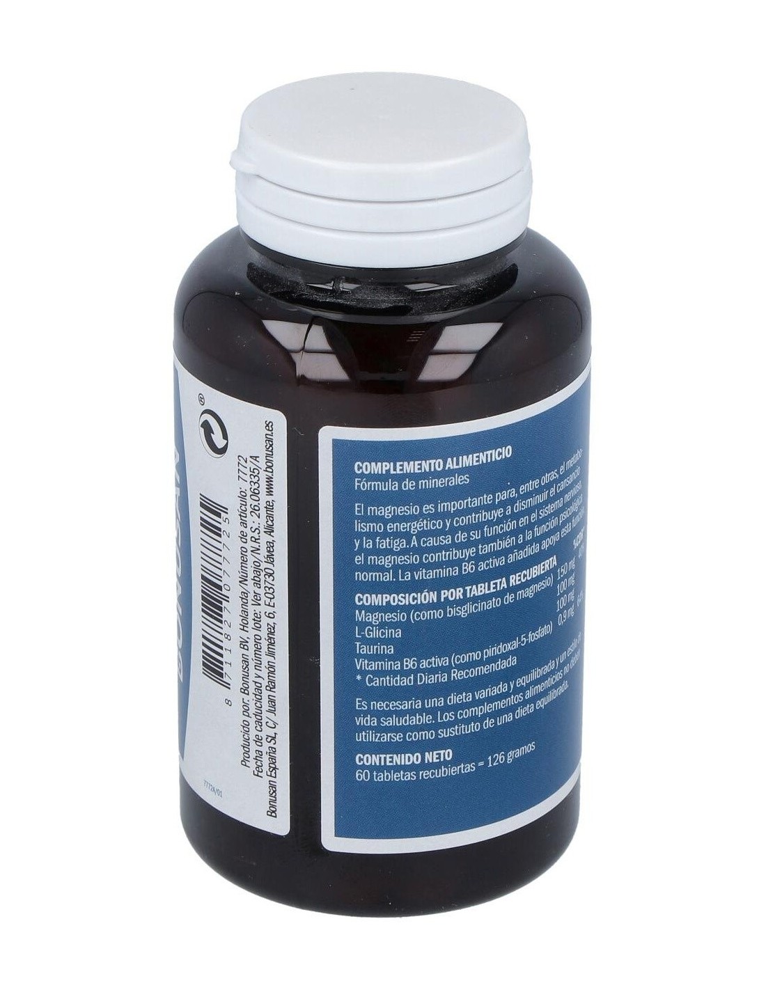 Bisglicinato de magnesio, agente de carga (MCC (gel de celulosa)), HPC (celulosa), croscarmelosa sódica), taurina, glicina, agente de carga (MCC (gel de celulosa)), agente de recubrimiento (HPMC, aceite MCT), antiaglomerante (estearato de magnesio), piridoxal-5-fosfato.