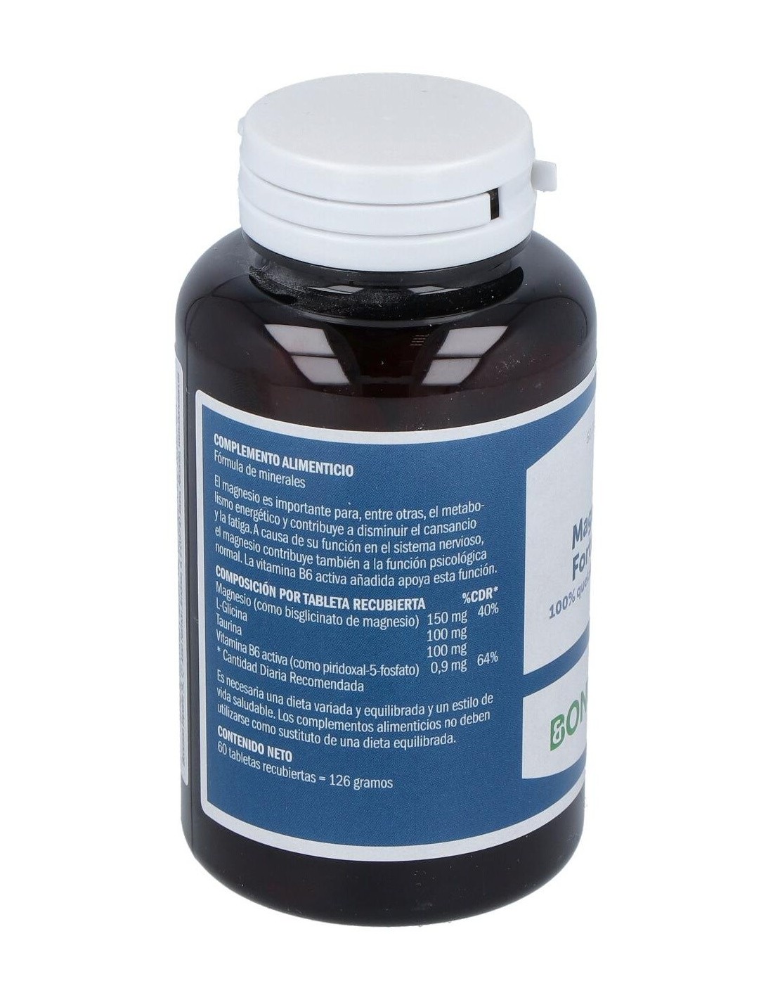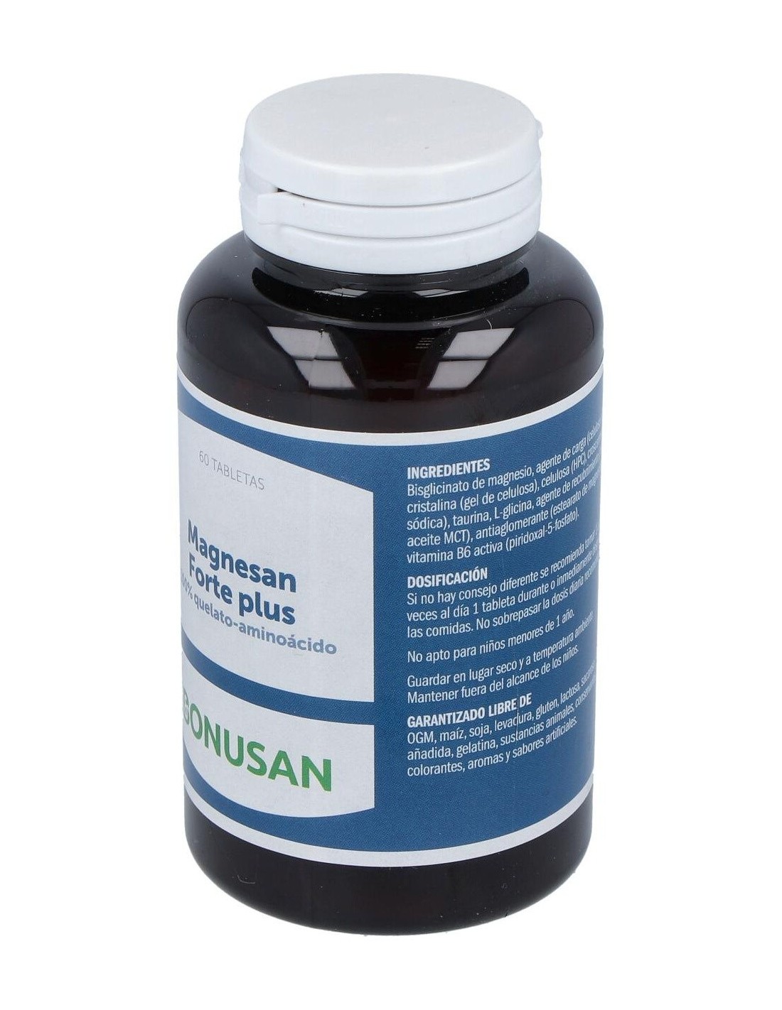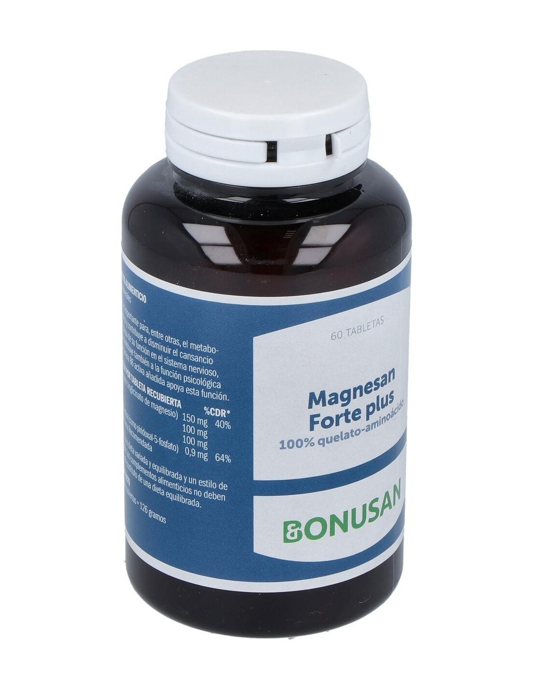 Magnesan Forte Plus proporciona 150 mg de magnesio elemental en forma de bisglicinato de magnesio. Esta forma se absorbe más fácilmente. Su revestimie