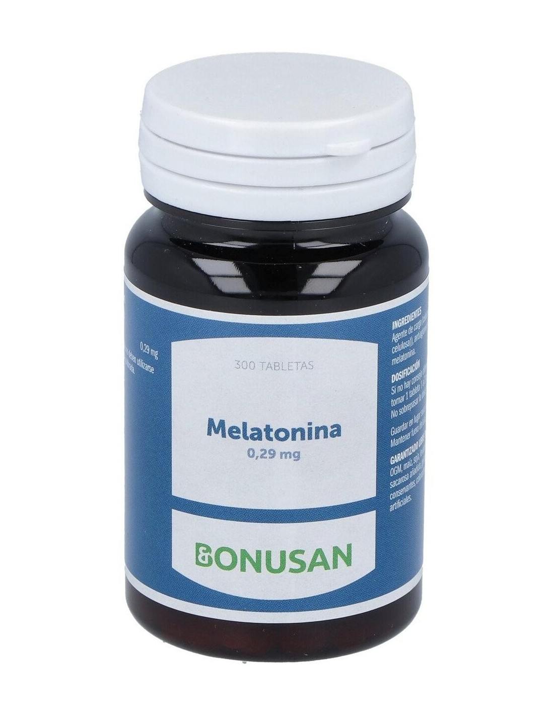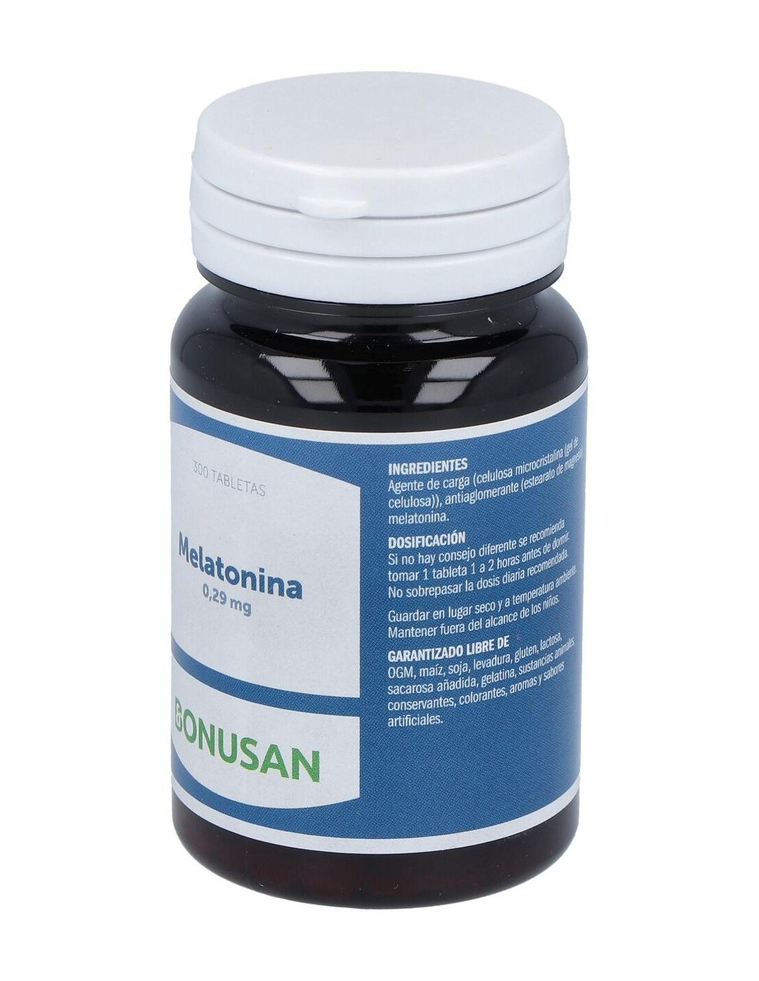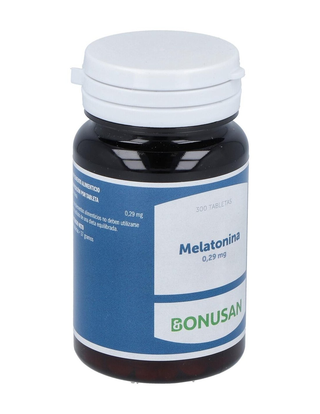 La Melatonina 0,29Mg. 300Comp. de Bonusan es un suplemento para personas que buscan apoyar su ciclo de sueño, ofreciendo una dosificación precisa en comprimidos para facilitar su consumo diario.