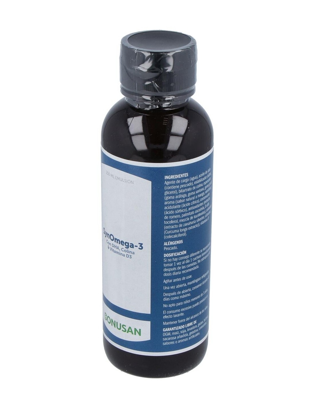 SynOmega-3 es una emulsión única a base de ácidos grasos. Además de los altos niveles de EPA, DHA y vitamina D3, contiene también la útil colina, un nutriente esencial que, entre otras cosas, ayuda a mantener la función normal del hígado y el metabolismo normal de la grasa. La emulsión de aceite de pescado purificado es inodora, tiene un sabor fresco a mango y una textura muy agradable para el paladar.