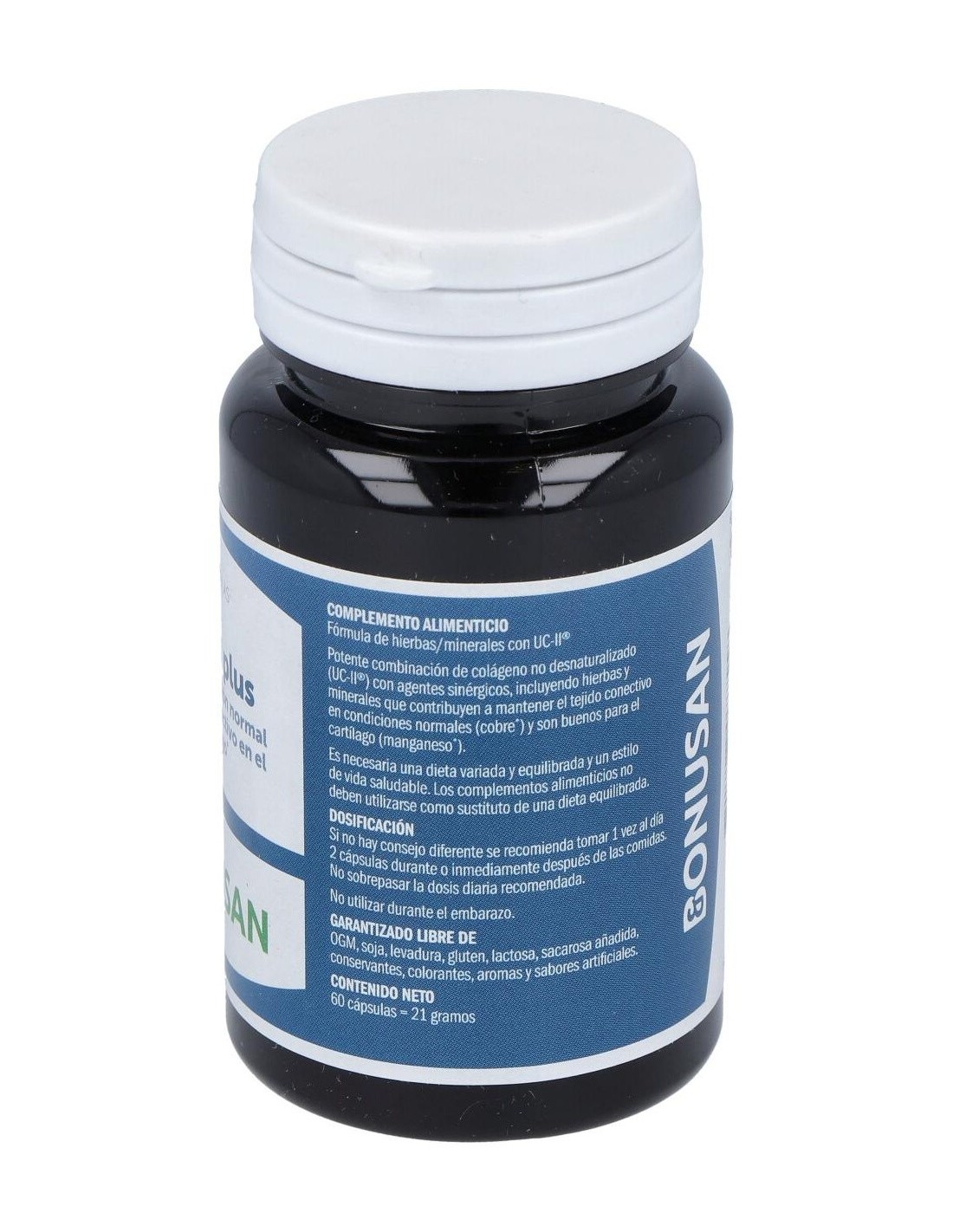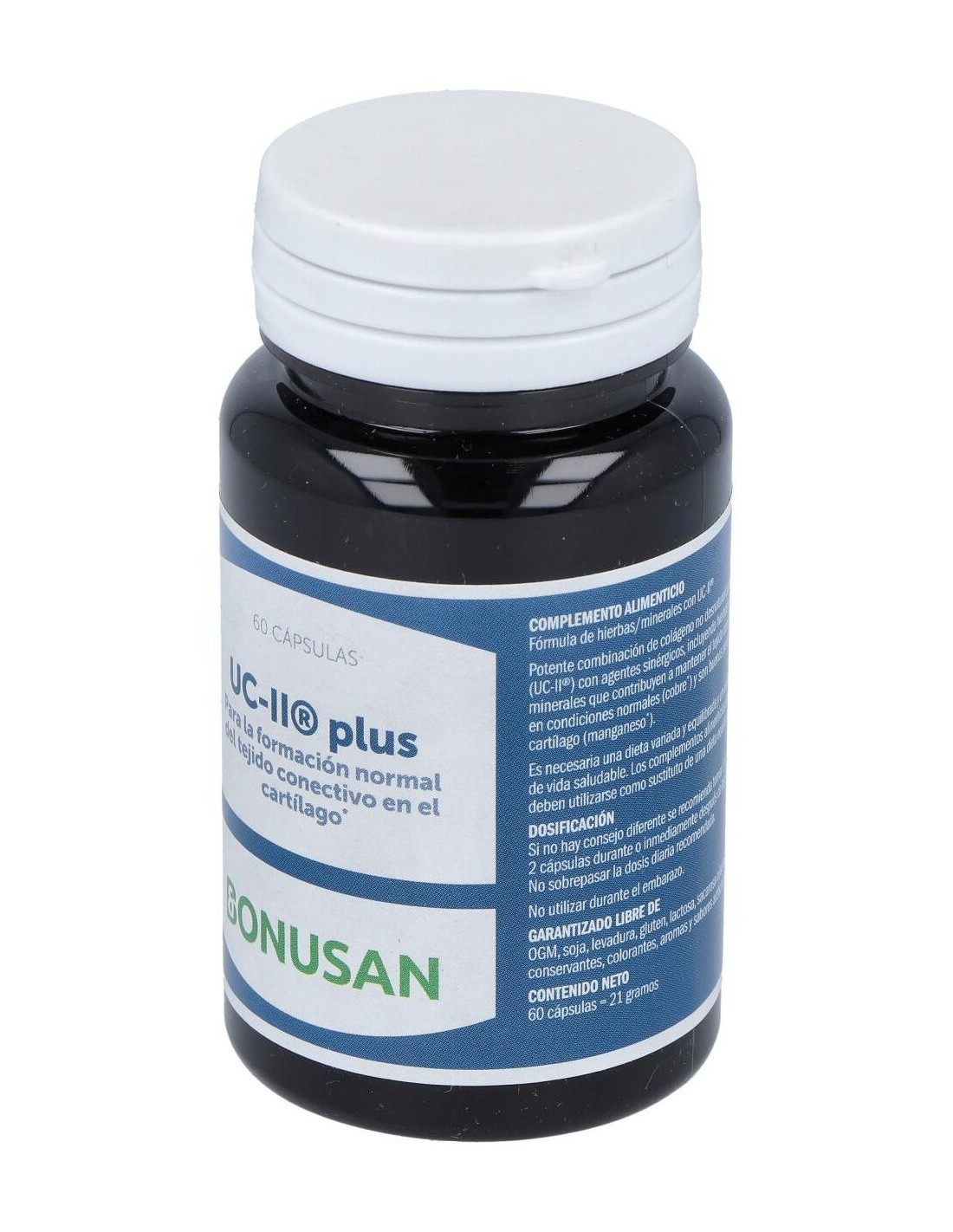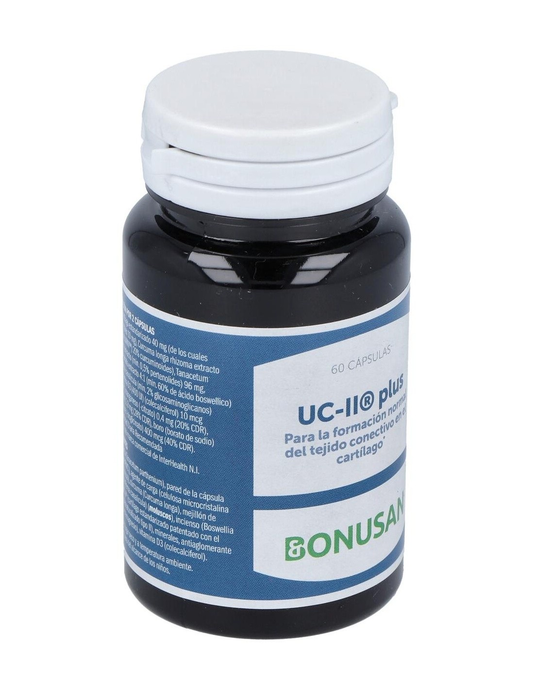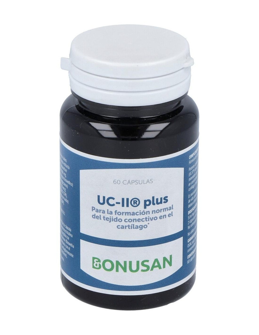 UC-II® plus contiene una serie de sustancias que se han demostrado beneficiosas para las articulaciones y que apoyan el efecto de colágeno de tipo II. Curcuma longa apoya las articulaciones y el sistema inmunológico y Boswellia serrata es beneficioso para la salud de las articulaciones. El mineral manganeso es beneficioso para la producción y la construcción del cartílago y el cobre ayuda a mantener la condición del tejido conectivo. También se incluye vitamina D, que es buena para el esqueleto.