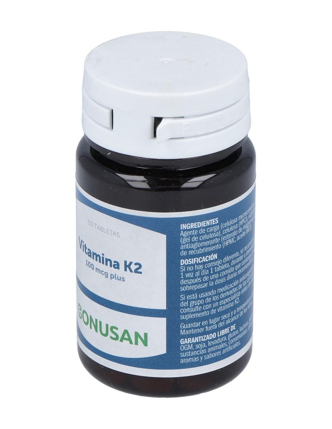 La vitamina K2 es una vitamina beneficiosa para los huesos y el sistema circulatorio. Ayuda a la coagulación de la sangre y a mantener los huesos fuertes y sanos. La vitamina K2 es única para los beneficios de los efectos energéticos. A fin de optimizar los efectos de la vitamina K2, Bonusan ha añadido vitamina D3, la forma más activa de la vitamina D. La adición de vitamina D3 asegura una absorción de seis a ocho veces mayor de la vitamina K2 y garantizando la máxima eficacia de sus principios activos en el cuerpo. Debido a sus efectos beneficiosos sobre los huesos y sistema circulatorio, la vitamina K2 es aconsejada también para personas de edad avanzada.