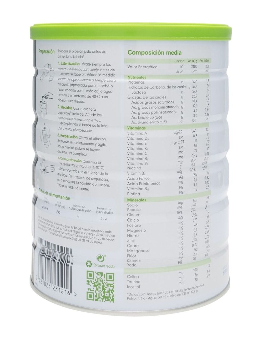 La leche Capricare 2 está elaborada con ingredientes seleccionados que cumplen con los estándares de calidad para alimentación infantil. Su composición busca ofrecer una alternativa nutritiva que se integra en la dieta diaria del bebé, respetando las recomendaciones de alimentación complementaria.