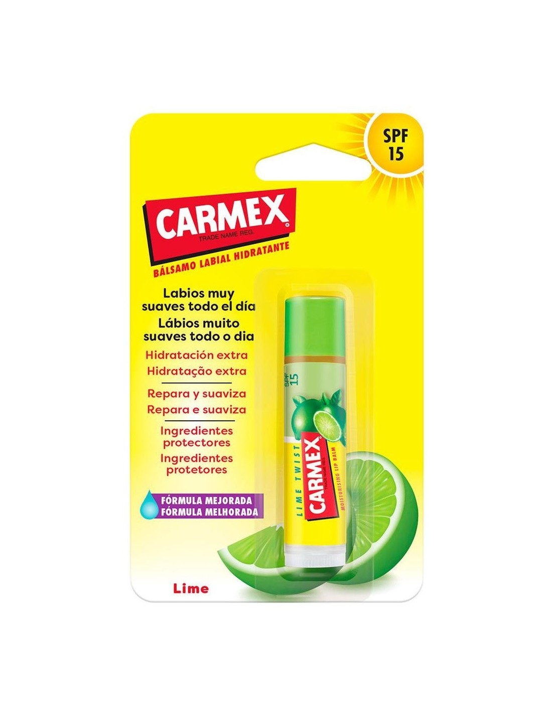Carmex Lime Twist bálsamo labial es un tratamiento que ayudará a la hidratación de tus labios y que favorecerá el volumen y la suavidad labial para conseguir el mejor aspecto facial.